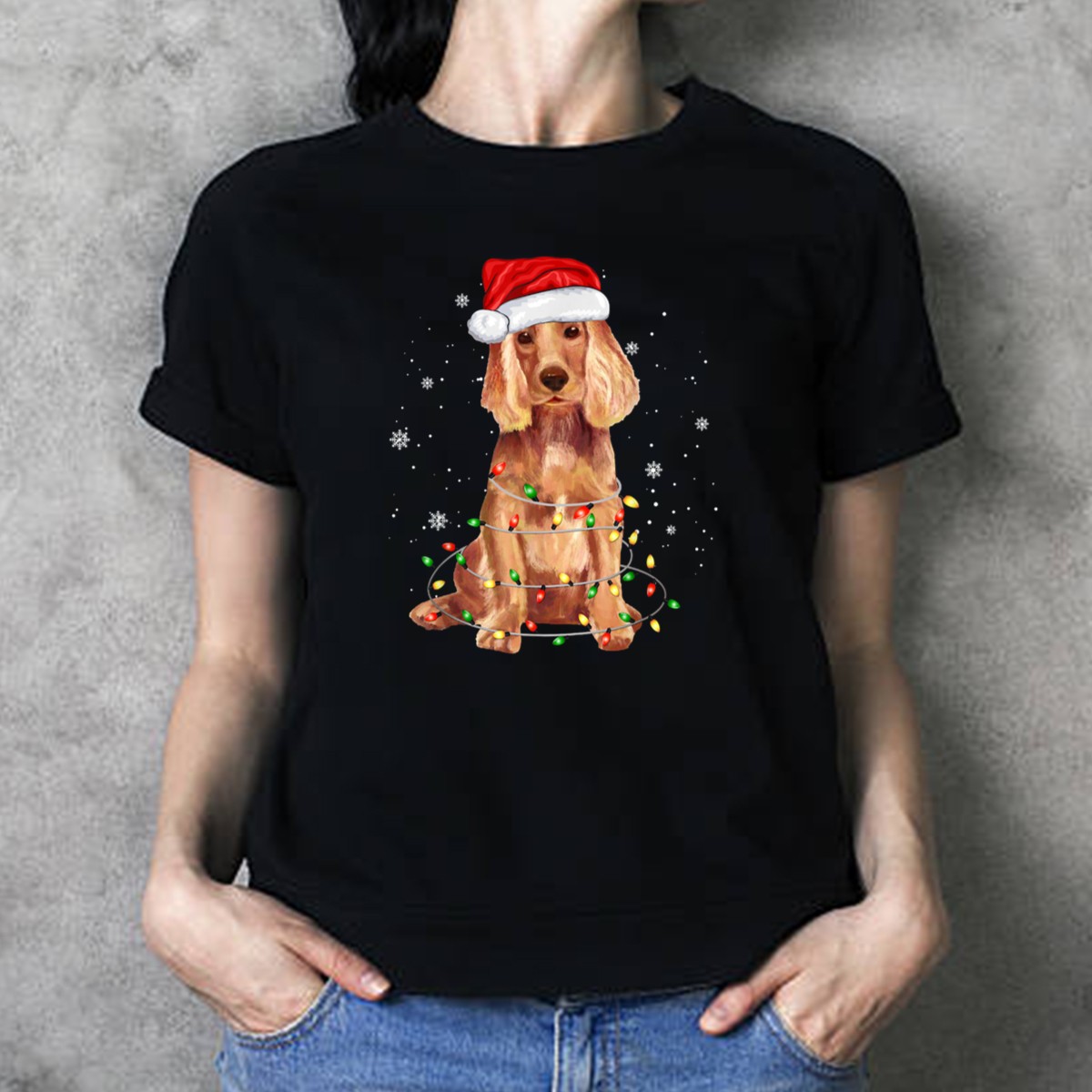 Celebrate the joy of the holiday season with our Cocker Spaniel Christmas Santa Hat T-Shirt! This fan-made design features an adorable Cocker Spaniel donned in a festive Santa hat, surrounded by sparkling holiday lights, making it the perfect addition to your casual wear collection. Ideal for dog lovers and holiday enthusiasts alike, this shirt is great for themed events, family gatherings, or simply spreading cheer during daily outings. With its soft and breathable fabric, you’ll not only look good but feel comfortable all season long!