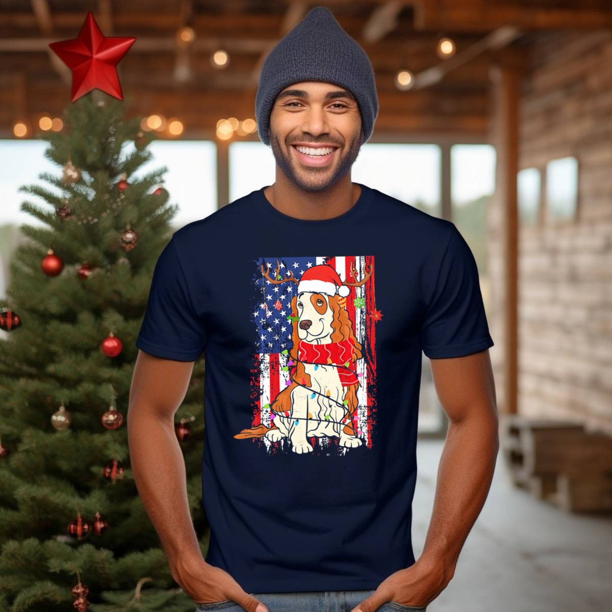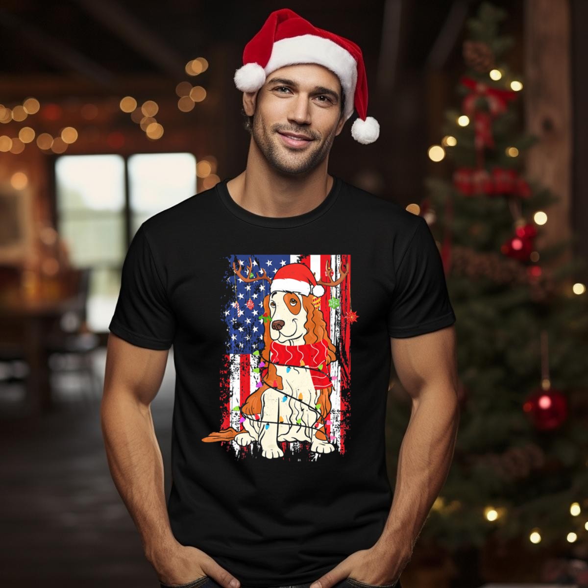 Celebrate the festive season with our Cocker Spaniel Christmas T-shirt, a perfect blend of holiday cheer and canine love! Ideal for dog enthusiasts and pet parents, this shirt showcases a delightful fan-made design featuring a Cocker Spaniel adorned with Santa hats, USA flags, and reindeer lights. Whether you’re attending themed events, family gatherings, or simply enjoying a casual day out, this shirt brings a joyful spirit to any occasion. Made with care and printed in the USA, it’s a unique way to express your love for your furry friend during the holidays.