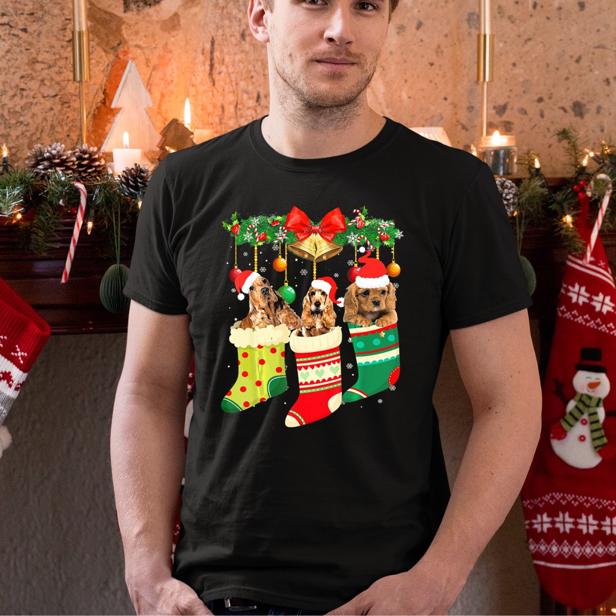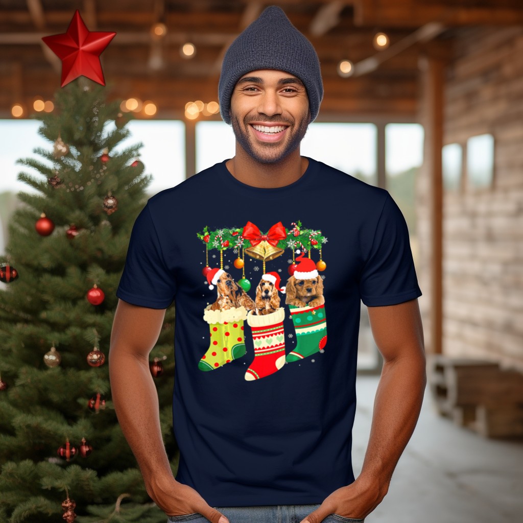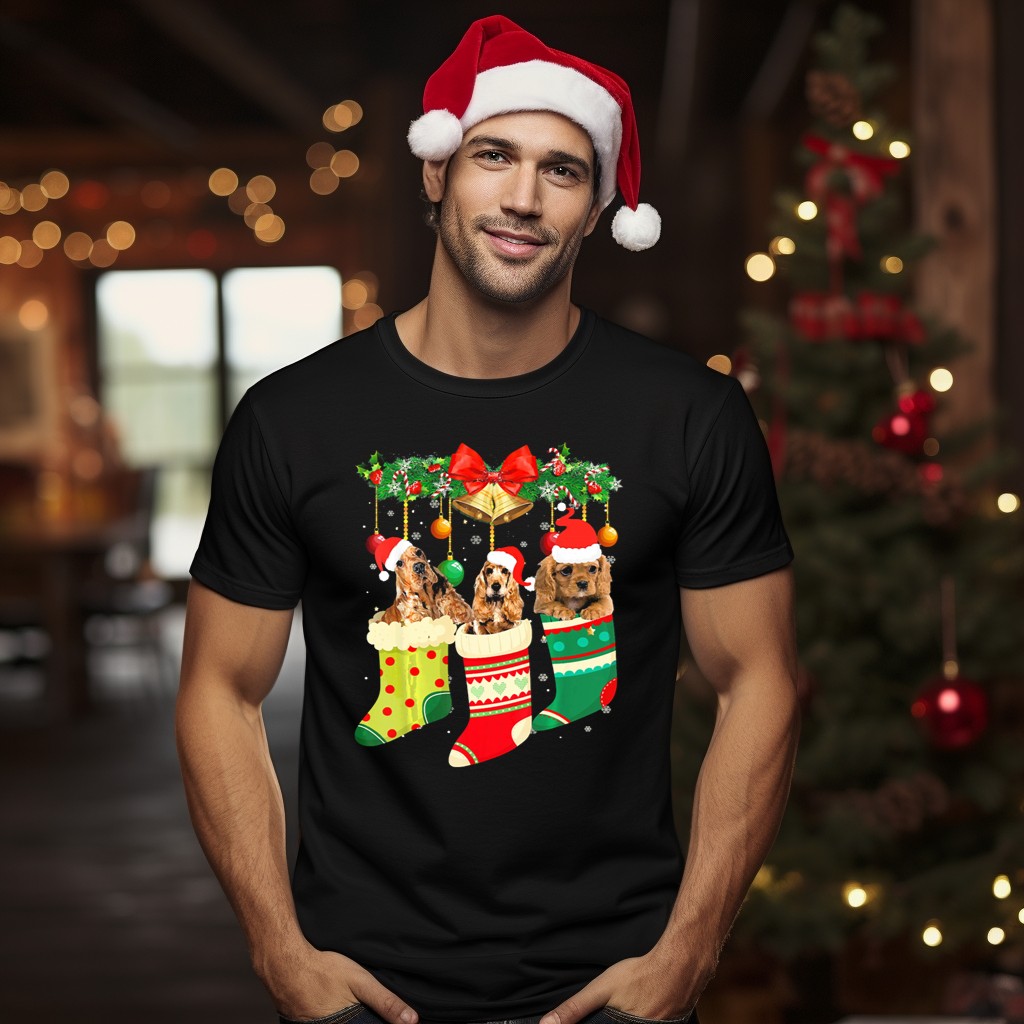 Celebrate the holiday season with our Cocker Spaniel Christmas T-shirt, perfect for dog lovers and festive enthusiasts alike! This delightful shirt features a charming design of Cocker Spaniels adorned with festive Santa hats and holiday decorations, making it an ideal choice for casual outings, themed events, or simply spreading cheer during daily wear. Crafted for comfort and style, this fan-made design is printed in the USA, ensuring a unique addition to your wardrobe.
