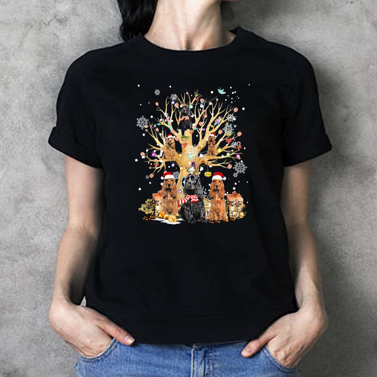 Celebrate the festive season with our charming Cocker Spaniel Christmas Tree T-shirt, perfect for dog lovers and holiday enthusiasts alike! This unique design features adorable Cocker Spaniels adorned with Santa hats and surrounded by cheerful holiday decorations, making it an ideal choice for casual wear, themed events, or just spreading holiday cheer. Made for comfort and style, this T-shirt is a must-have for anyone looking to showcase their love for their furry friends during the most wonderful time of the year.