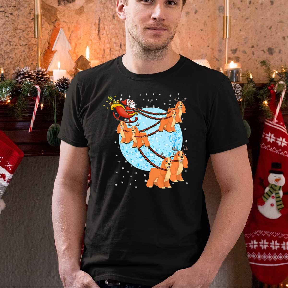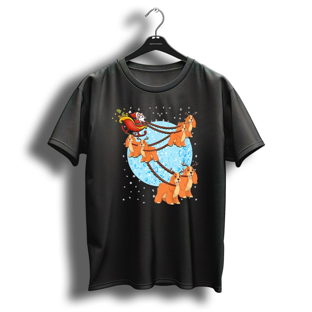 Cocker Spaniel Santa Reindeer Sleigh Christmas Moon Snowflakes T Shirt