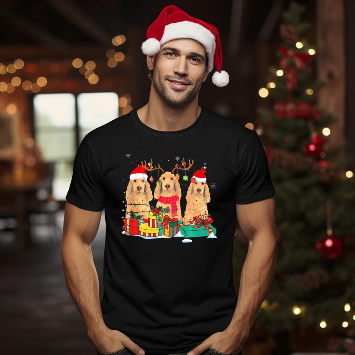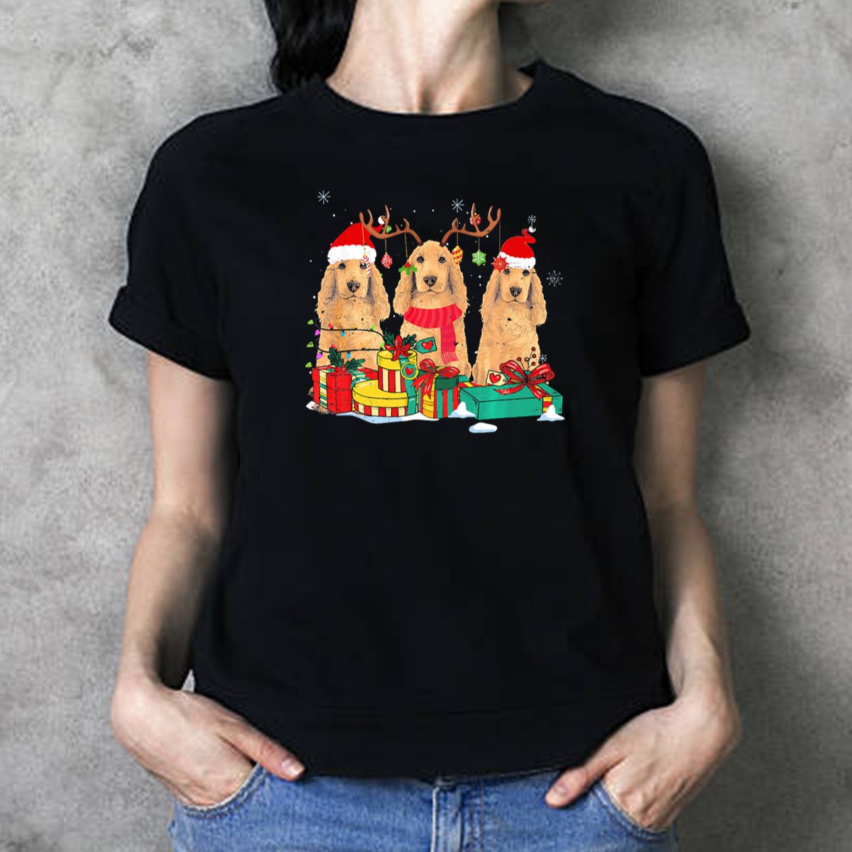 Be the first to review “Cocker Spaniel Trio With Santa Hat Antlers And Christmas Gifts T Shirt”