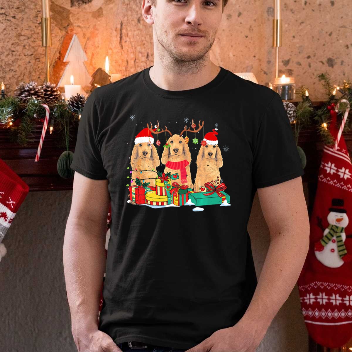 Cocker Spaniel Trio With Santa Hat Antlers And Christmas Gifts T Shirt