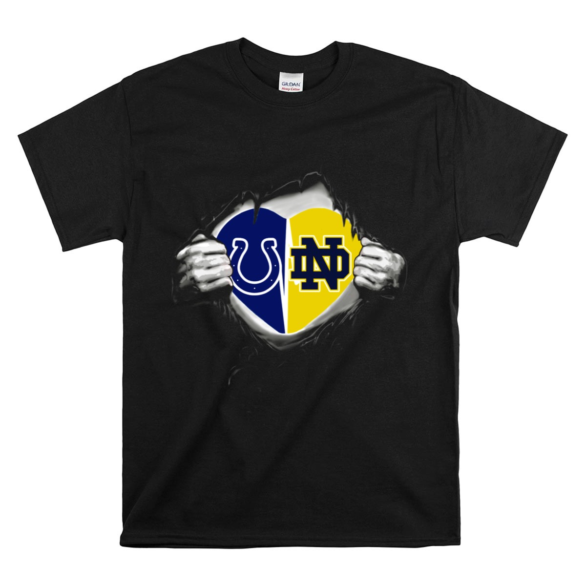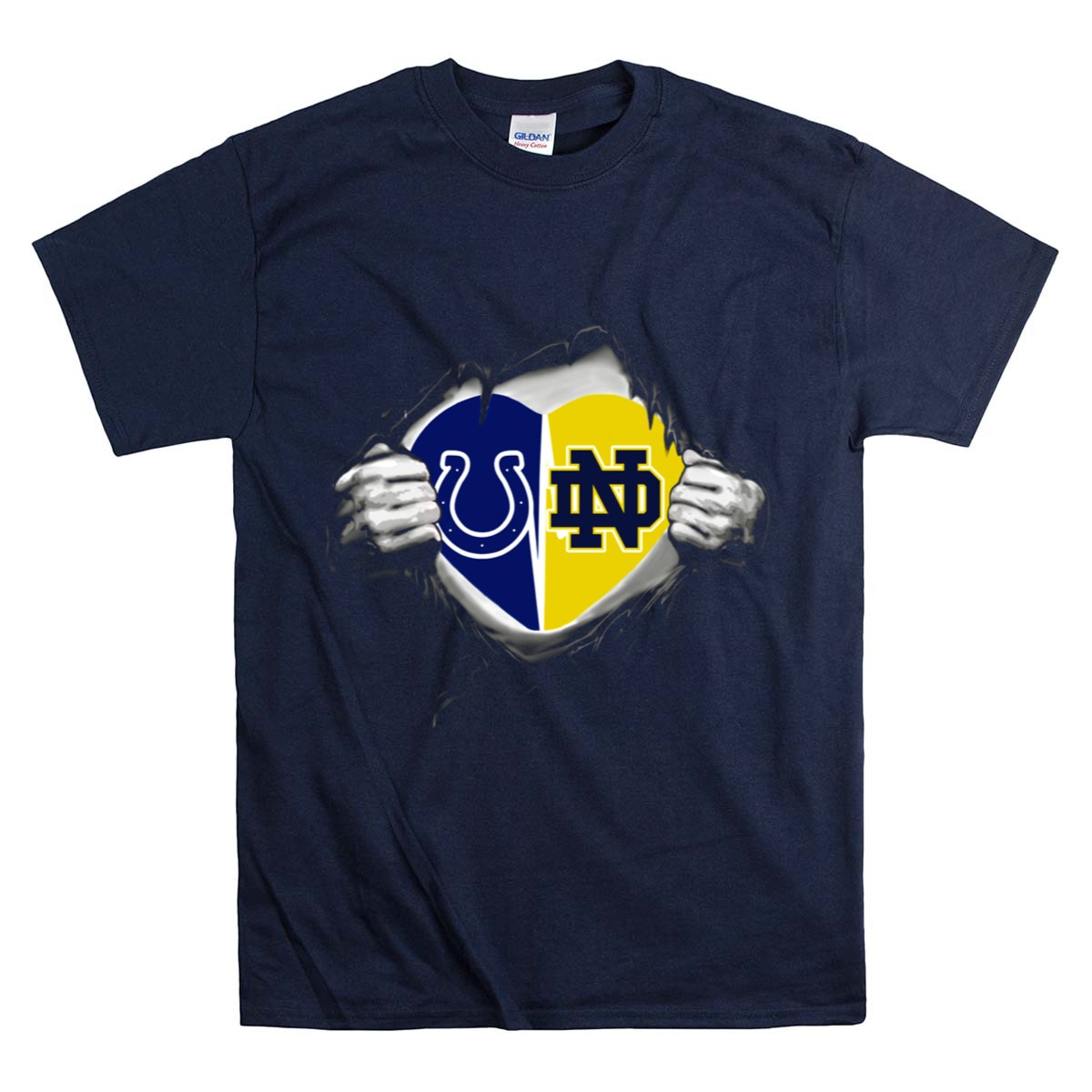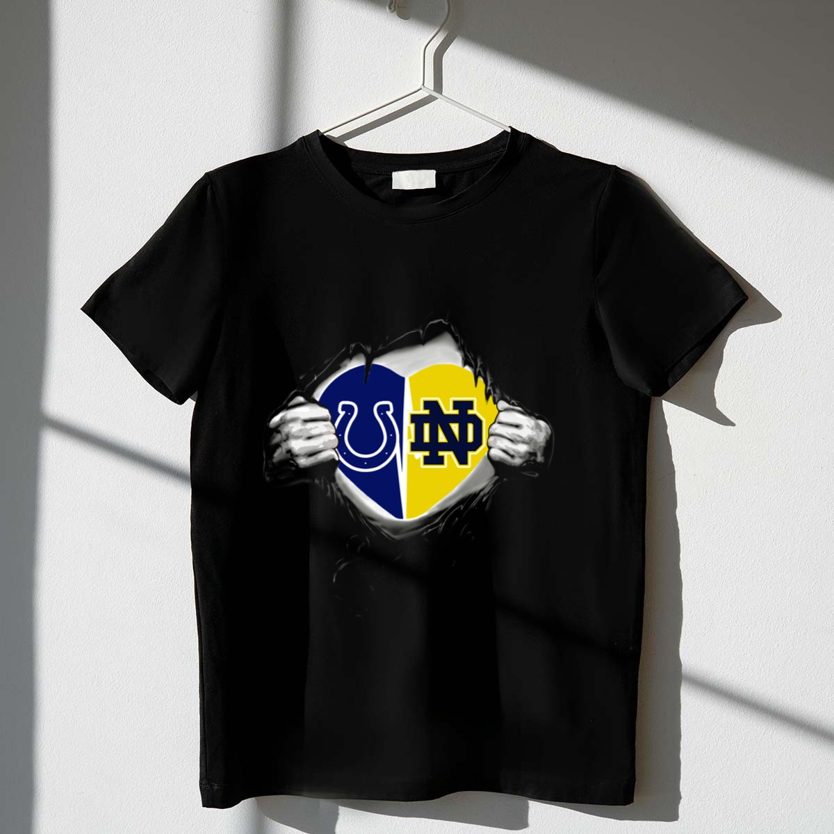 Show your unwavering support for the Notre Dame Fighting Irish with this fan-made Colts Notre Dame Fighting Irish Heart T-Shirt. Perfect for die-hard fans, this classic tee is ideal for casual outings, themed events, or daily wear, allowing you to showcase your team pride anywhere you go. Crafted with care and printed in the USA, this shirt combines comfort and style, making it a must-have addition to your game day wardrobe.