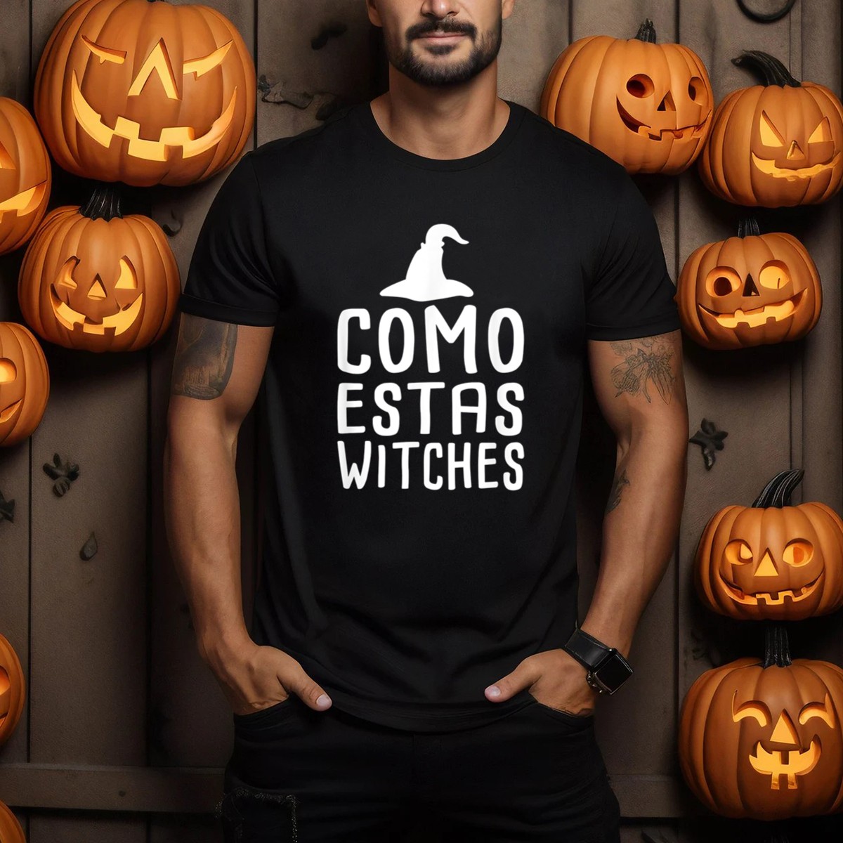 Embrace your inner witch this Halloween with our Como Estas Witches T-Shirt! Perfect for those who love to celebrate the spooky season in style, this fan-made design features a whimsical witch hat that adds a playful touch to your casual wear. Ideal for themed events, daily outings, or simply lounging around, this shirt is designed for all-season comfort and will surely make you the life of the party!