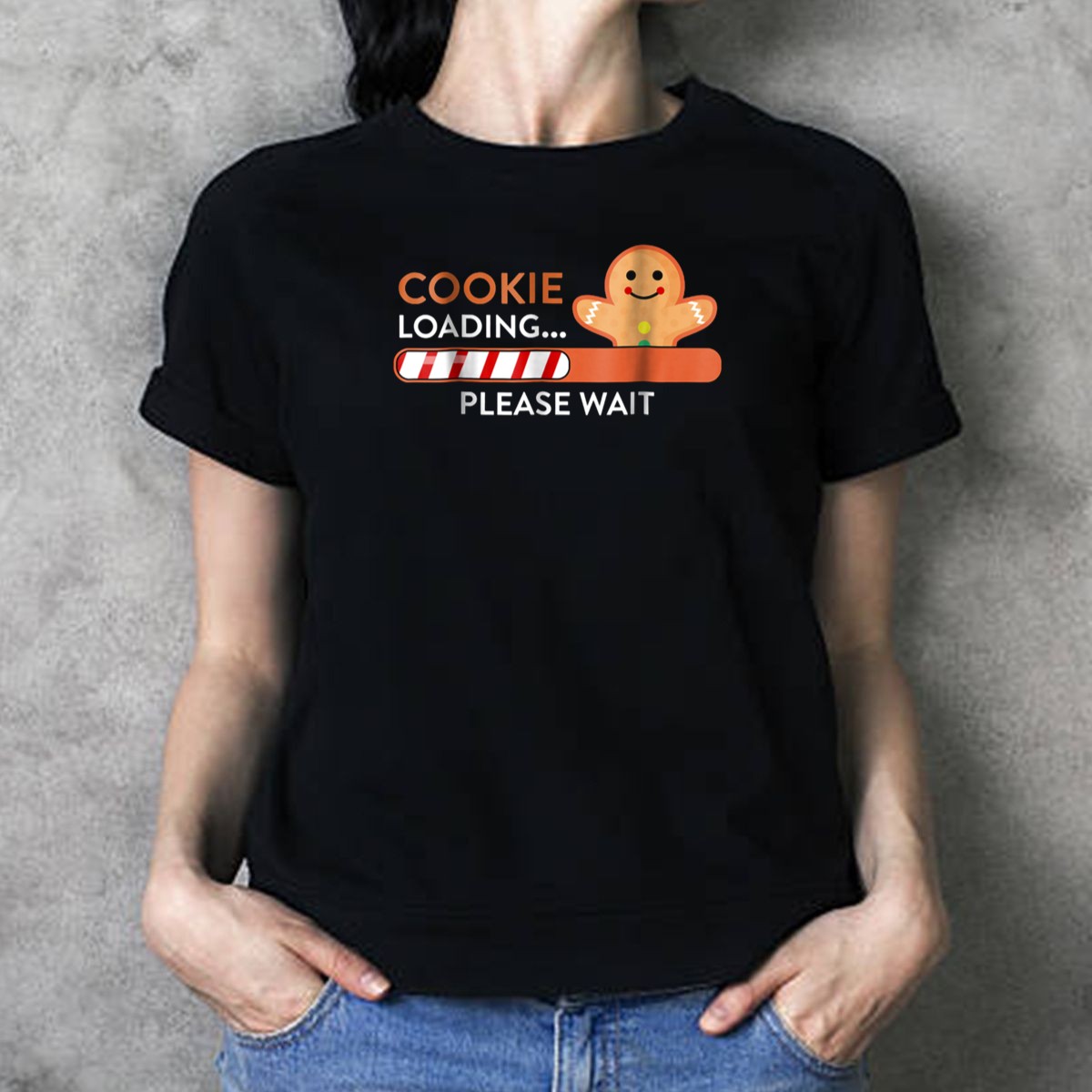 Celebrate the holiday season with our whimsical “Cookie Loading Please Wait” T-shirt, perfect for expectant moms who want to add a touch of humor to their festive wardrobe! This fan-made design features a delightful gingerbread theme, making it an ideal choice for casual outings, themed events, or simply lounging around during the holidays. Crafted with care in the USA, this shirt is not just a fun statement piece, but also a comfortable and stylish addition to any mom-to-be’s collection.