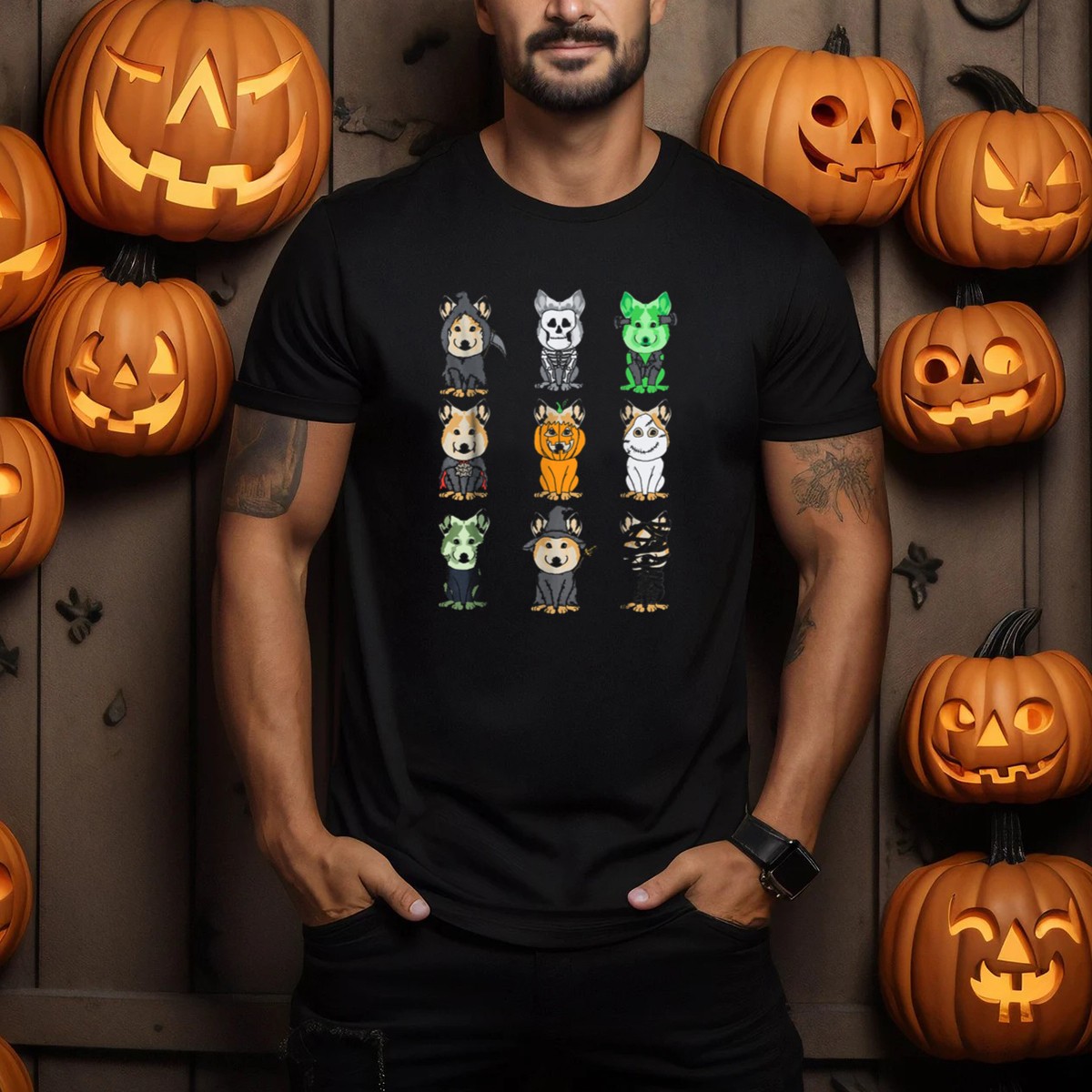 Get ready to embrace the spooky season with our Cool Halloween Corgi Dogs Funny We Costumes Spooky Skeleton Pumpkin Mummy T-Shirt! Perfect for dog lovers and Halloween enthusiasts alike, this shirt features an adorable design that showcases playful corgis dressed in festive costumes. Ideal for casual wear, themed events, or just lounging around, it’s designed to bring smiles and laughter wherever you go. Plus, with its fan-made design printed right here in the USA, you can wear it with pride!