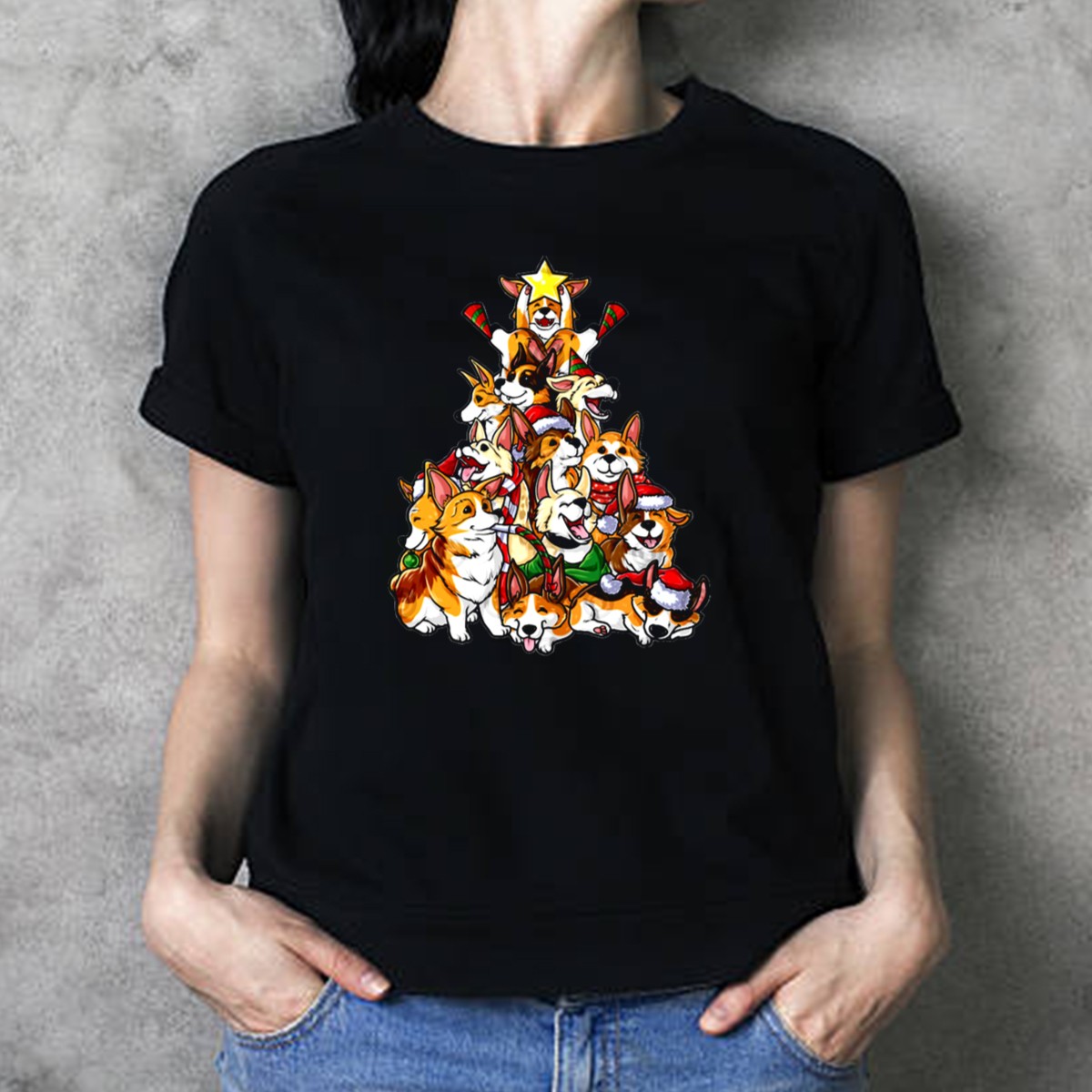 Celebrate the festive season with our charming Corgi Christmas Tree T-Shirt! Perfect for dog lovers and holiday enthusiasts alike, this tee features an adorable design of playful corgis adorned with Santa hats and surrounded by candy canes. Ideal for casual outings, themed events, or simply spreading holiday cheer during daily wear, this shirt combines comfort with a fun, unique style that will make you the star of any gathering. Made in the USA, it’s a must-have for your all-season wardrobe!