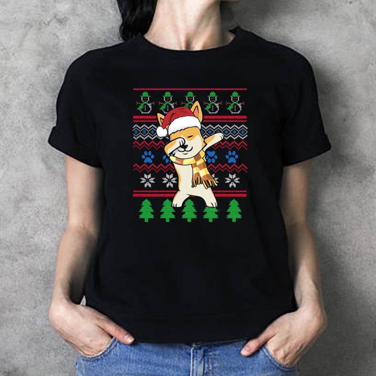 Get into the festive spirit with our Corgi Dabbing In Santa Hat With Snowmen Christmas Trees And Paw Prints Ugly T-Shirt! Perfect for dog lovers and holiday enthusiasts alike, this fun and whimsical design is ideal for casual wear, themed events, or simply spreading joy during the holiday season. Made with a fan-made design printed right here in the USA, this shirt combines comfort with a playful vibe, making it a must-have for your winter wardrobe.