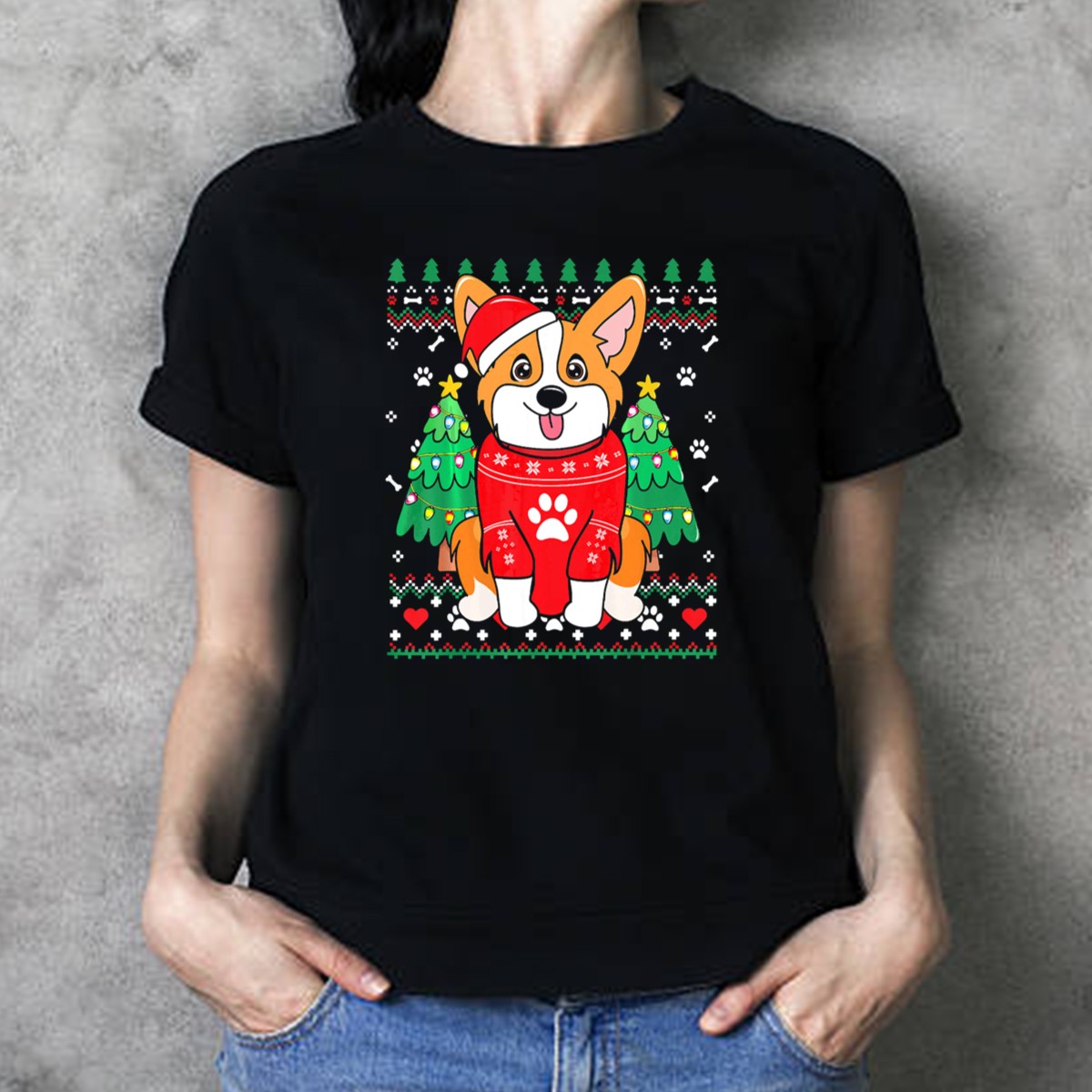 Celebrate the festive season in style with our adorable Corgi In Santa Hat With Paw Print Sweater And Christmas Trees T-Shirt! Perfect for dog lovers and holiday enthusiasts alike, this shirt is designed to bring joy and laughter to any casual gathering or themed event. Made for comfort and durability, it features a charming graphic that showcases your love for Corgis while keeping you cozy during all your holiday festivities. Whether you’re attending a Christmas party, lounging at home, or out and about, this shirt is sure to turn heads and spread cheer!