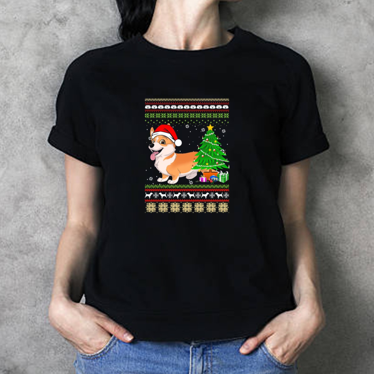 Be the first to review “Corgi Santa Christmas Tree Snowflakes Festive T-Shirt”