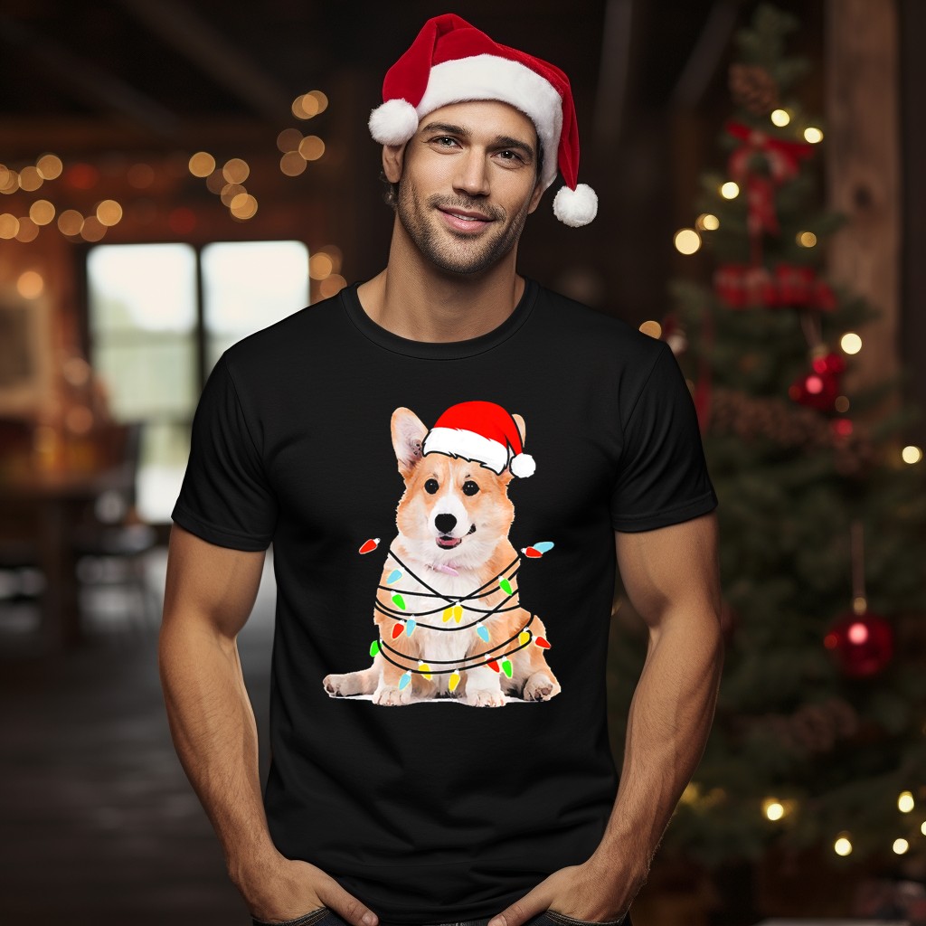 Be the first to review “Corgi Santa Hat Wrapped In Christmas Lights T-Shirt”
