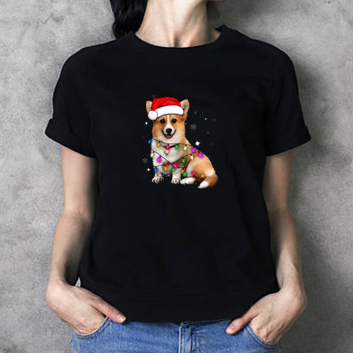 Embrace the festive spirit with our Corgi Santa Wrapped In Christmas Tree Lights T-Shirt! Perfect for dog lovers and holiday enthusiasts alike, this playful design captures the joy of the season with a charming Corgi wrapped in colorful lights and surrounded by delicate snowflakes. Ideal for casual wear, themed events, or just spreading holiday cheer, this shirt is sure to turn heads and bring smiles wherever you go.