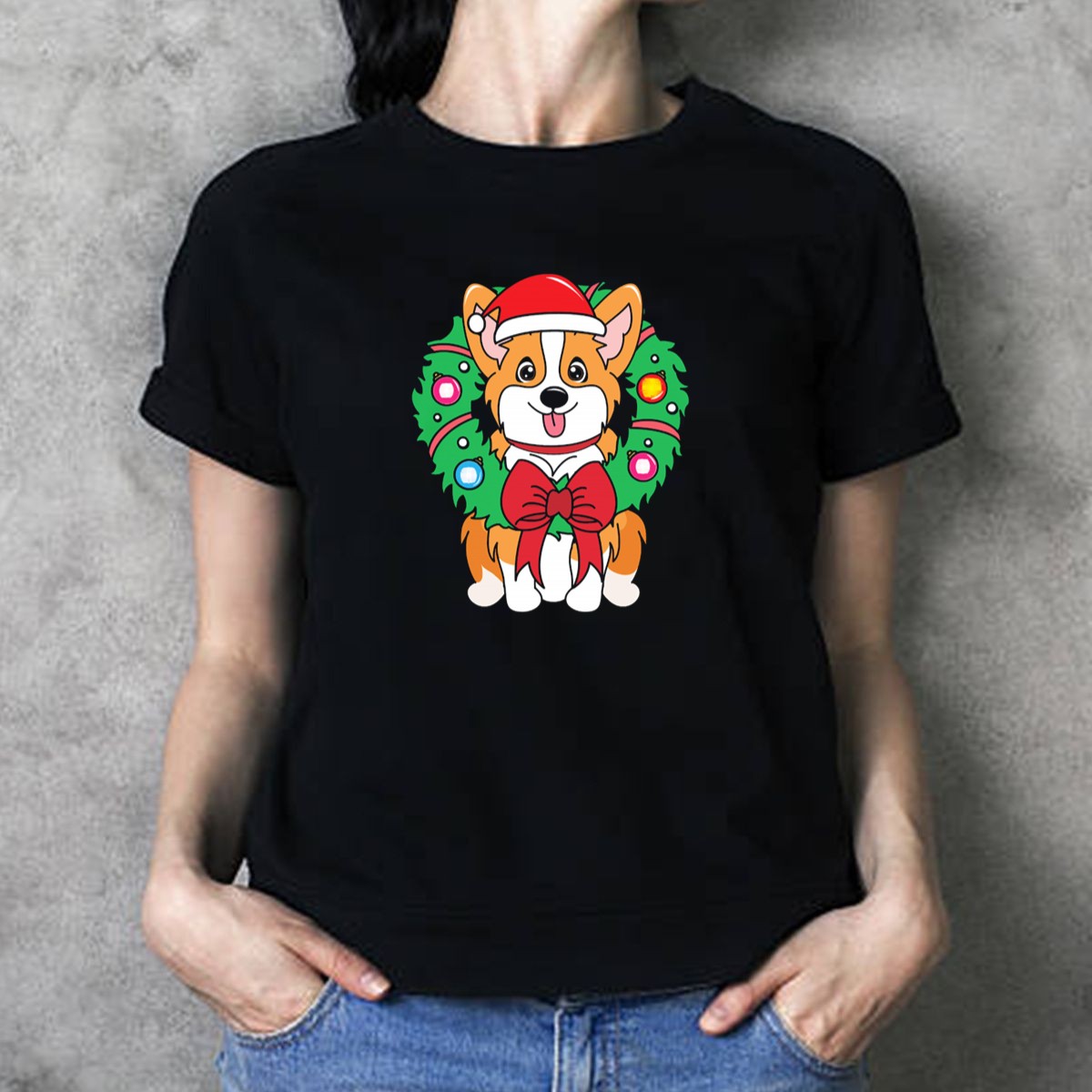 Be the first to review “Corgi With Santa Hat And Christmas Wreath With Bow And Ornaments T-Shirt”