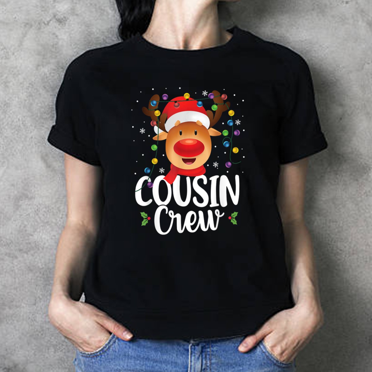 Get ready to spread holiday cheer with our Cousin Crew Christmas Reindeer Santa Hat T-Shirt! Perfect for family gatherings, themed events, or simply enjoying the festive season, this shirt is designed for those who love to celebrate in style. The vibrant, fan-made graphic features a cheerful reindeer wearing a Santa hat adorned with colorful lights, making it a unique addition to your holiday wardrobe. Crafted for comfort and durability, this tee is a delightful way to showcase your festive spirit while enjoying casual wear throughout the season.
