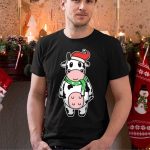 Cow In Santa Hat With Green Scarf Christmas Winter T Shirt 1