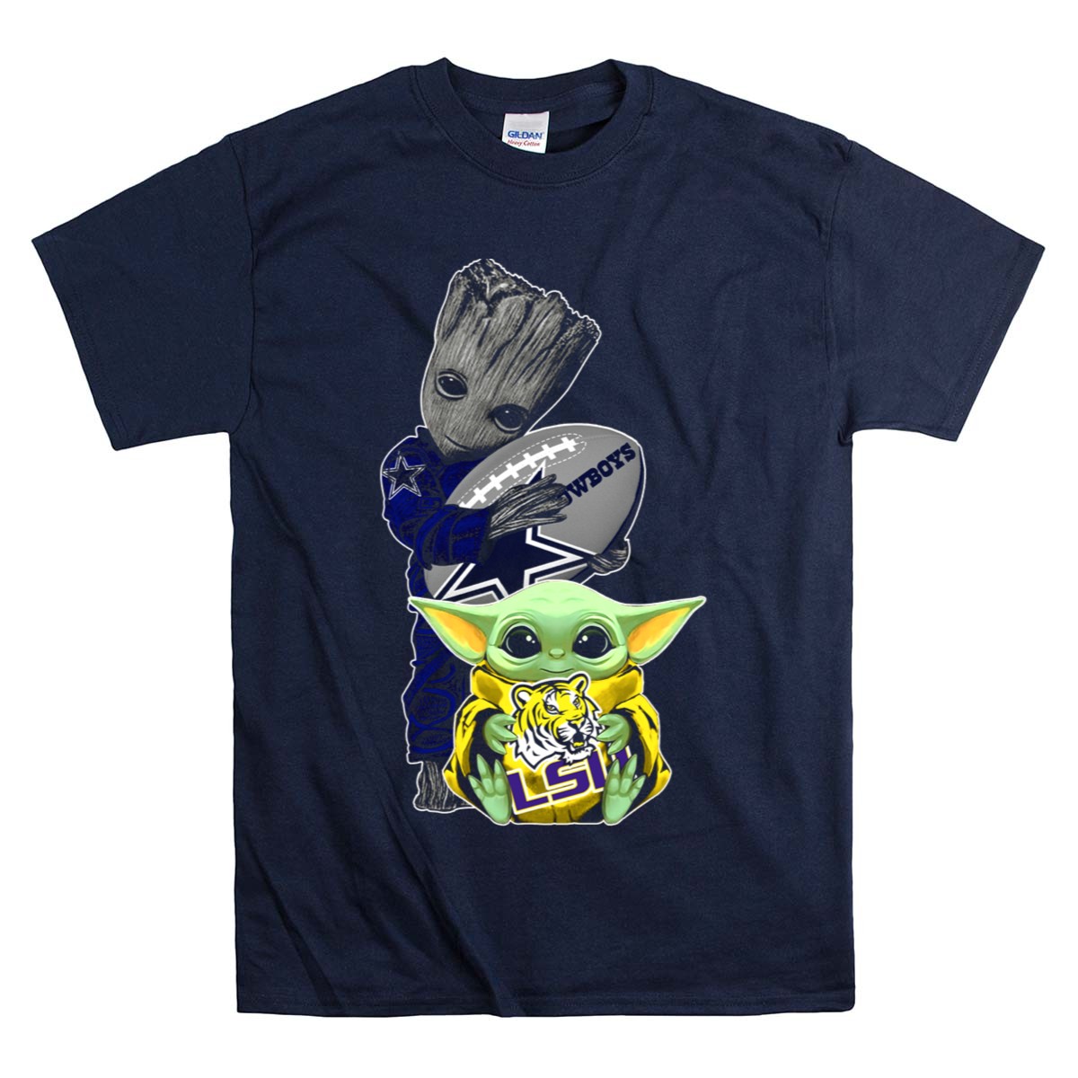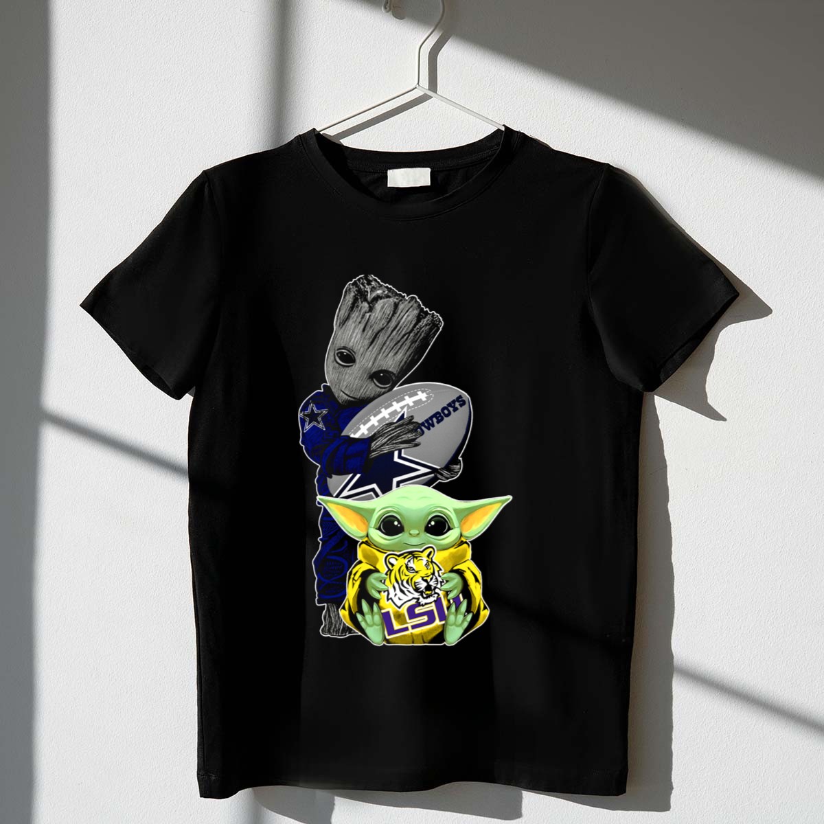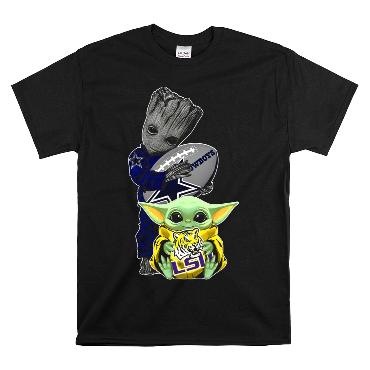 Show off your team spirit with our Cowboys Football Groot And LSU Yoda T-Shirt! This fan-made design is perfect for passionate sports enthusiasts and casual fans alike. Ideal for game days, themed events, or simply lounging around, this shirt brings together the love for football and beloved pop culture characters in a unique way. Made for comfort and style, it’s your go-to choice for any occasion, showcasing your love for both the Cowboys and LSU Tigers!