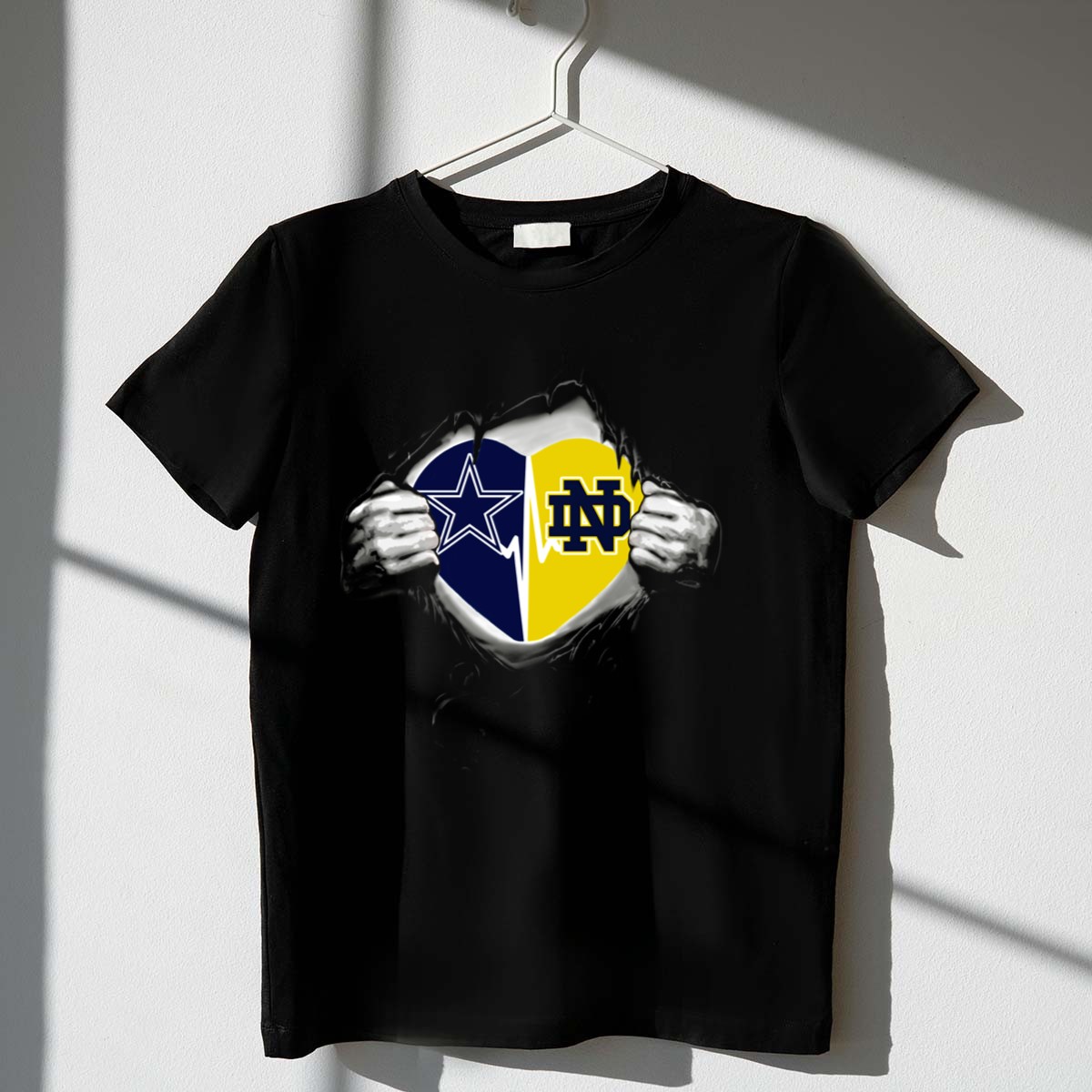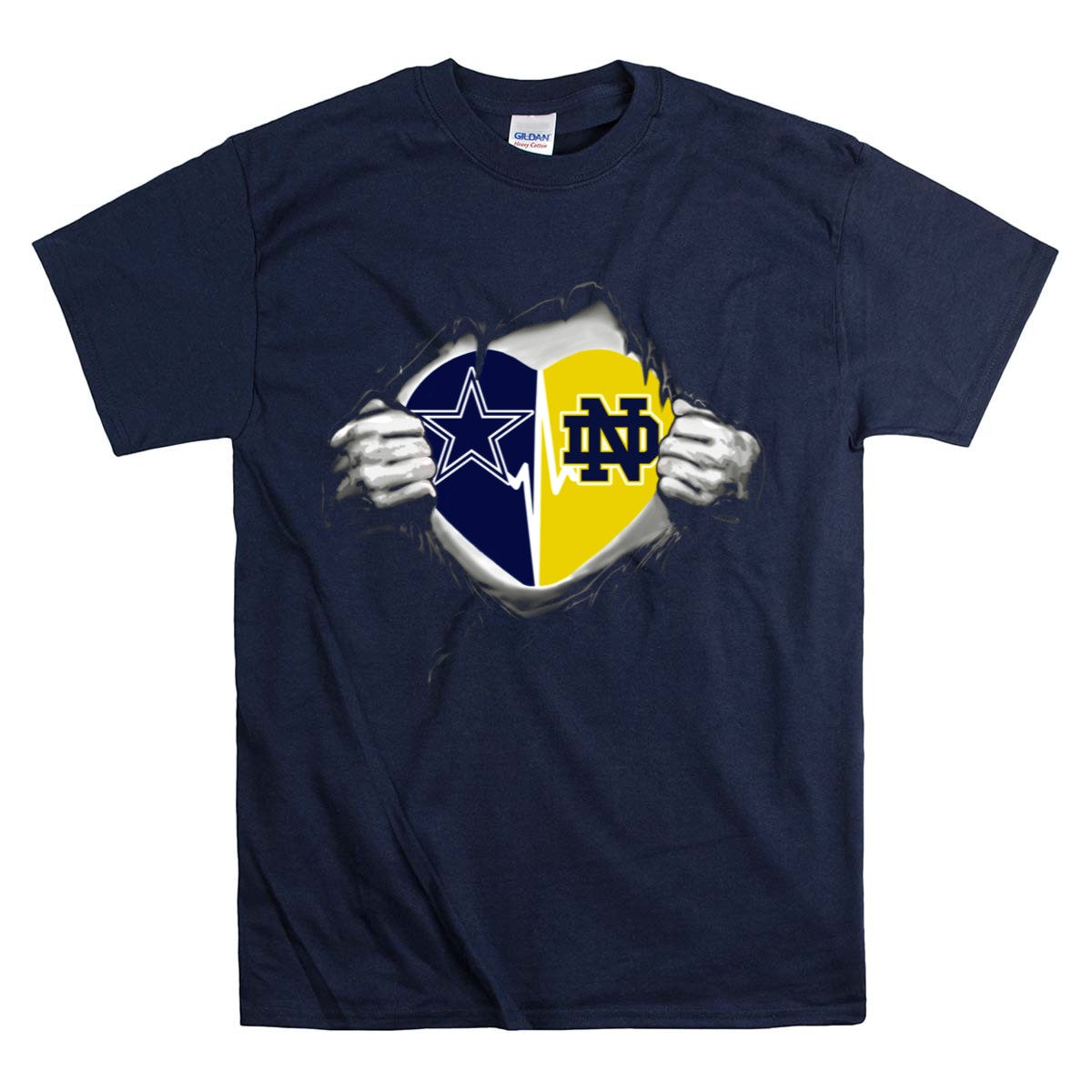 Show your unwavering support for the Notre Dame Fighting Irish with our Cowboys Notre Dame Fighting Irish Heart Logo Passion T-Shirt. This fan-made design is perfect for die-hard fans and casual wearers alike, making it an ideal choice for game days, themed events, or simply expressing your love for the team in everyday life. Crafted for comfort and style, this shirt is printed in the USA, ensuring a high-quality finish that stands out in any crowd.