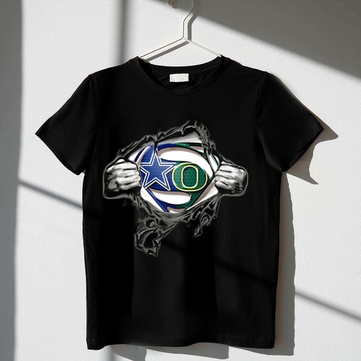 Show off your team spirit with our Cowboys Oregon Ducks Superman Logo Mashup T-Shirt! Perfect for fans who want to combine their love for the Oregon Ducks and the iconic Superman logo, this shirt is designed for casual wear, themed events, or just daily outings. Made for all-season comfort, this unique fan-made design is printed in the USA, ensuring you stand out while supporting your favorite teams in style.