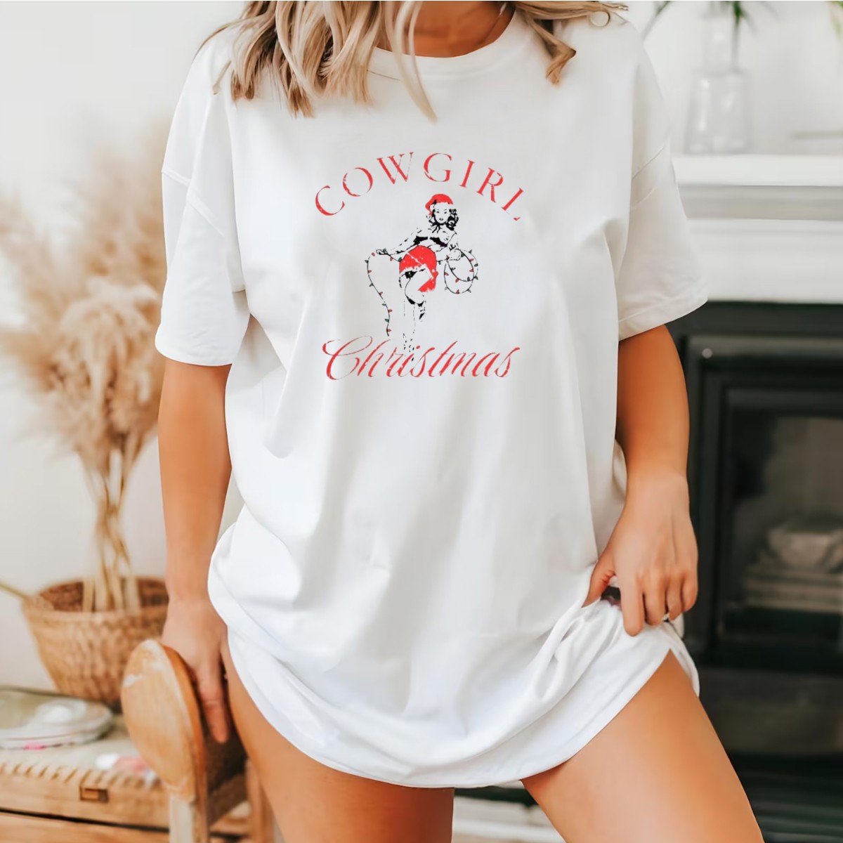 Celebrate the holiday season in style with our Cowgirl Christmas Santa Hat Festive Lights Retro Pin Up T-Shirt! Perfect for those who love to mix a bit of vintage flair with festive fun, this shirt is designed for cowgirls and holiday enthusiasts alike. Whether you’re attending a themed event, gathering with friends, or just looking for a cheerful addition to your daily wear, this shirt is uniquely crafted to spread holiday cheer with a stylish twist.