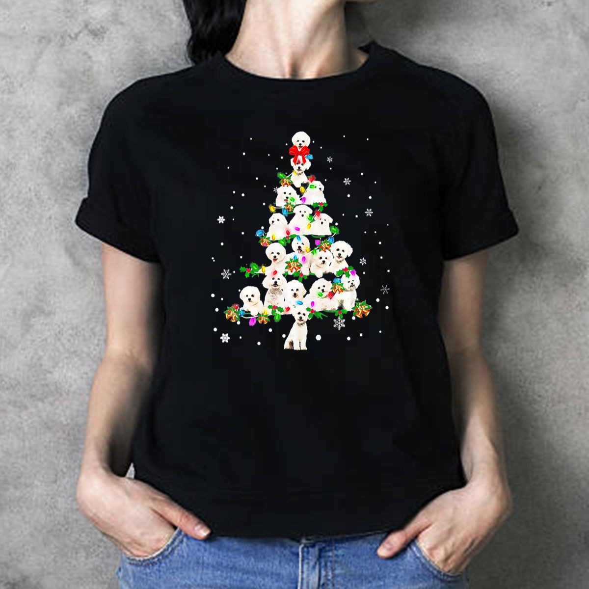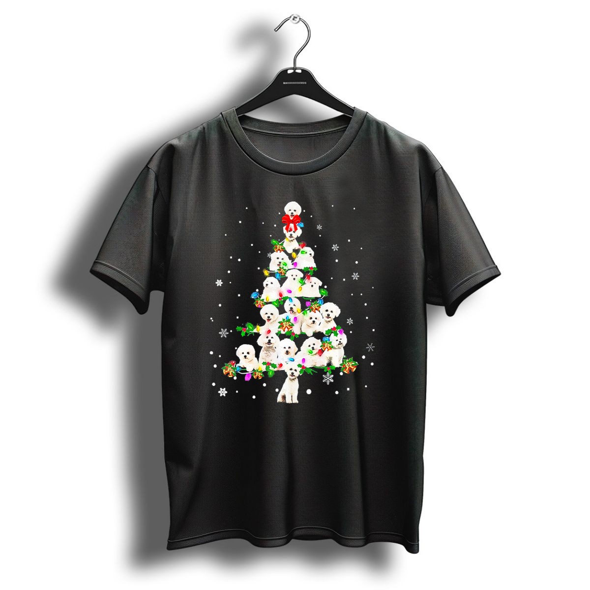 Celebrate the joy of the holiday season with our adorable Cute Bichon Frise Dog Holiday Christmas Tree T-Shirt! Perfect for dog lovers and festive enthusiasts alike, this charming tee features a delightful graphic of a Bichon Frise surrounded by a beautifully decorated Christmas tree, snowflakes, and festive decorations. Ideal for casual wear, themed events, or daily outings, this shirt adds a touch of whimsy to your winter wardrobe and showcases your love for this playful breed. Made in the USA, it’s a unique fan-made design that stands out in any holiday gathering.