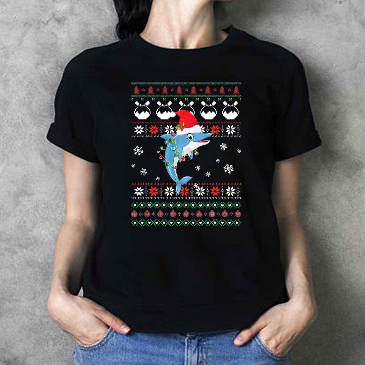 Cute Dolphin Ugly Christmas T-Shirt