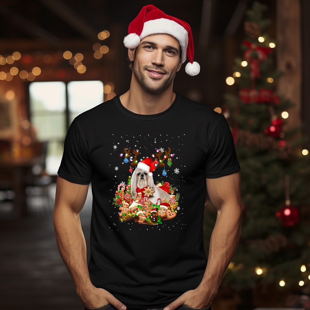 Celebrate the festive season with our adorable Cute Shih Tzu Reindeer Christmas T-shirt! Perfect for dog lovers and holiday enthusiasts alike, this fan-made design captures the playful spirit of Christmas with a charming Shih Tzu dressed as a reindeer, surrounded by delightful gingerbread and candy canes. Ideal for casual wear, themed events, or daily festivities, this shirt adds a touch of whimsy to any holiday outfit. Made with care in the USA, it’s a must-have for your Christmas wardrobe!