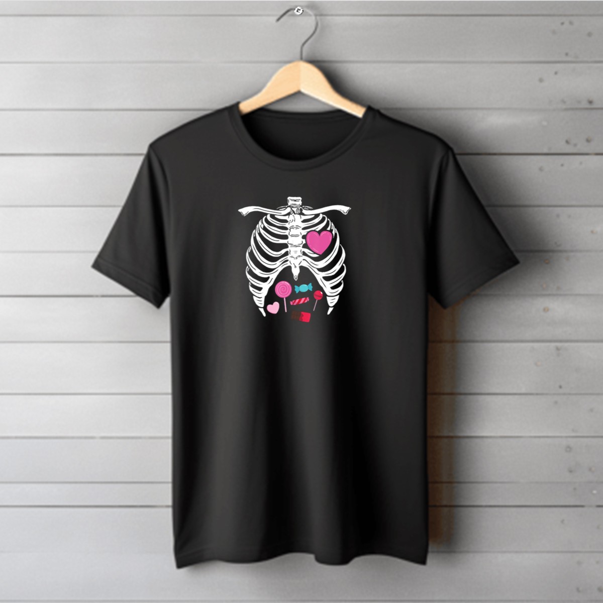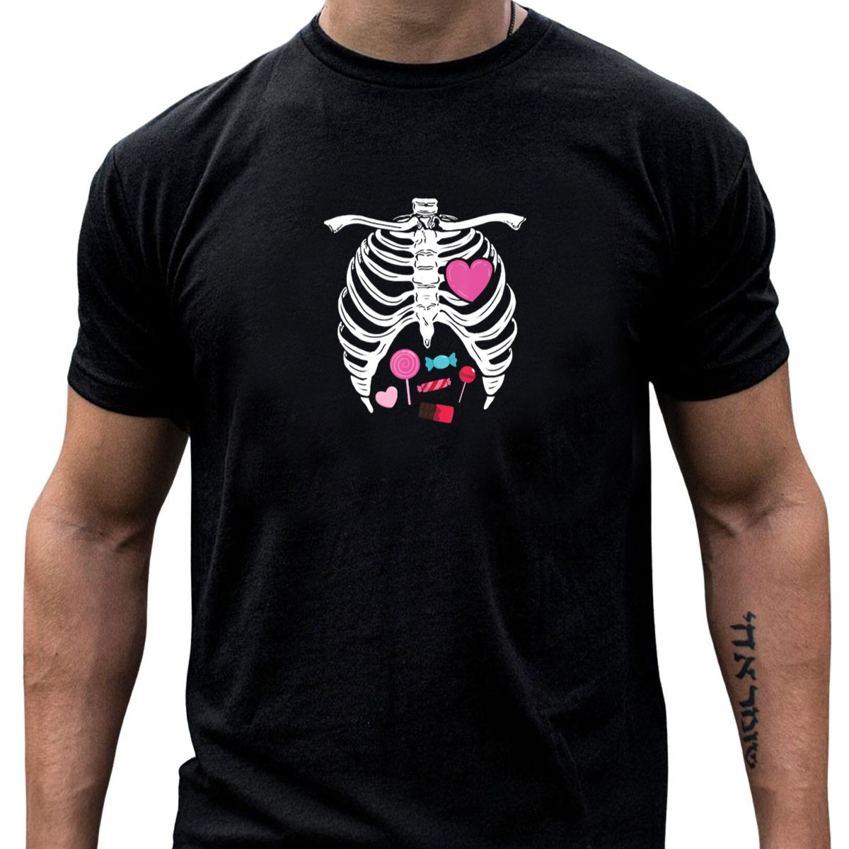 Get ready to embrace the spooky season with our Cute Skeleton Candy Rib Cage Halloween Xray Heart Sweets T-Shirt! Perfect for Halloween enthusiasts and anyone looking to add a playful twist to their casual wardrobe, this fan-made design is sure to turn heads at themed events or during daily wear. With its unique blend of fun and fright, this shirt is a must-have for those who love to celebrate Halloween in style.