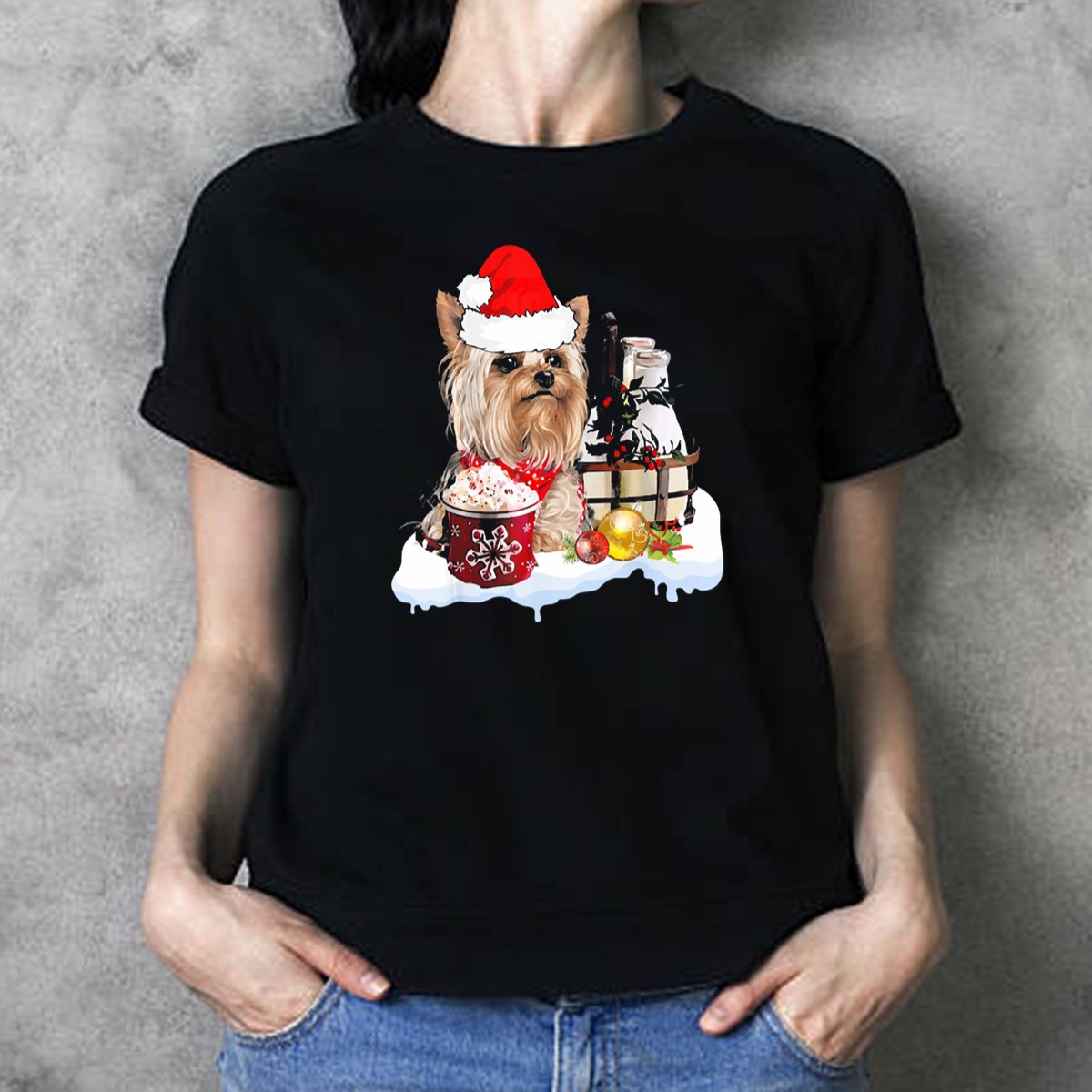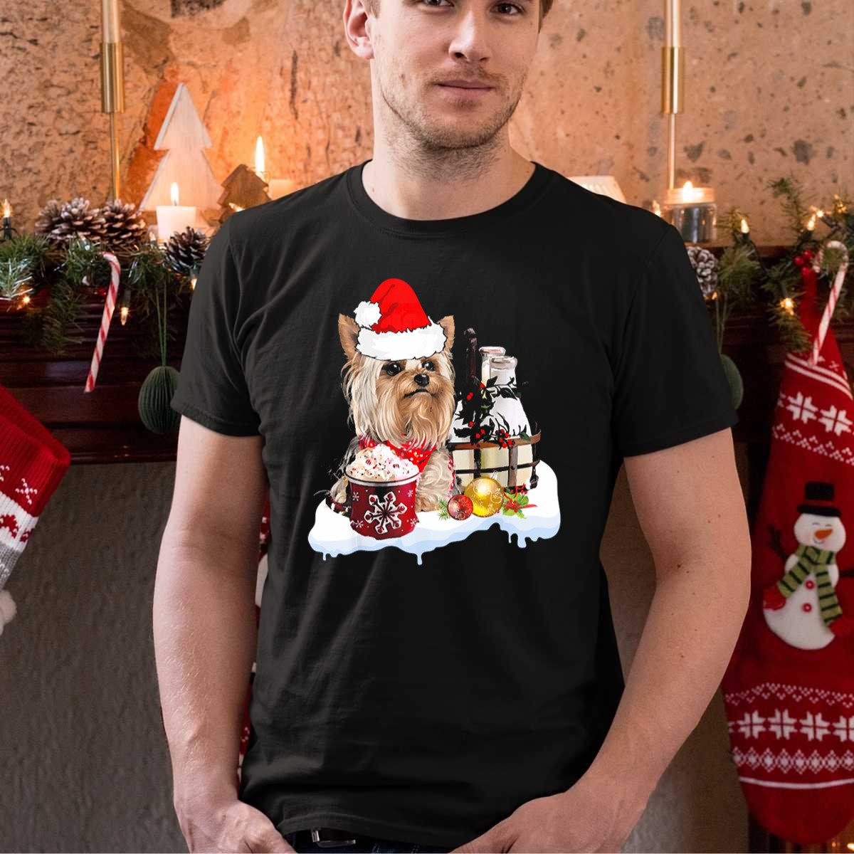 Celebrate the festive season with our adorable “Cute Yorkshire Terrier with Santa Hat” T-shirt, perfect for dog lovers and holiday enthusiasts alike! This charming design captures the spirit of Christmas with a delightful Yorkshire Terrier enjoying hot cocoa surrounded by ornaments. Ideal for casual wear, themed events, or simply spreading holiday cheer, this shirt is a must-have for your seasonal wardrobe. Plus, it’s fan-made and proudly printed in the USA, making it a unique addition to your collection!