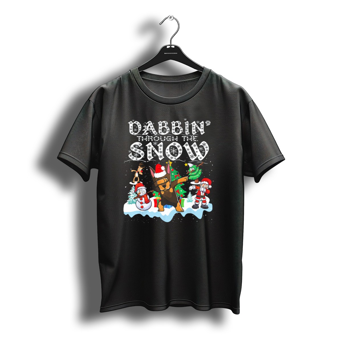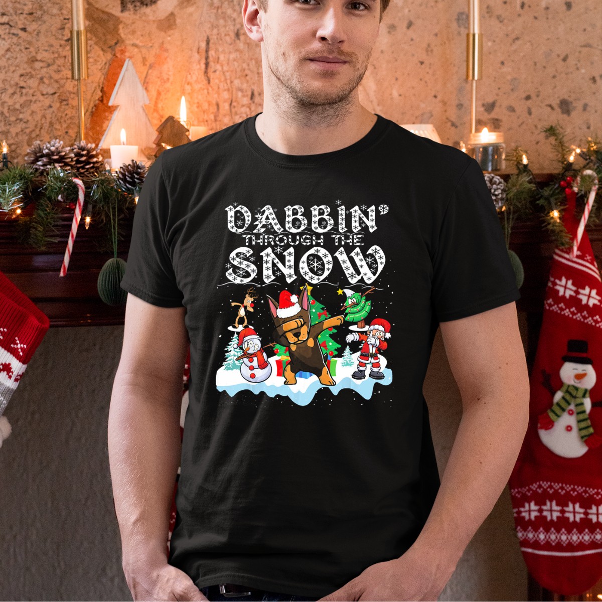 Celebrate the festive season with our Dabbin’ Through The Snow Christmas Doberman Santa And Snowman Fun T-Shirt! This playful and eye-catching design is perfect for dog lovers and holiday enthusiasts alike. Whether you’re heading to a themed party, a casual get-together, or just want to spread some Christmas cheer during your daily wear, this shirt is sure to turn heads and spark conversations. Made for comfort and style, this fan-made design is proudly printed in the USA, making it a unique addition to your holiday wardrobe.