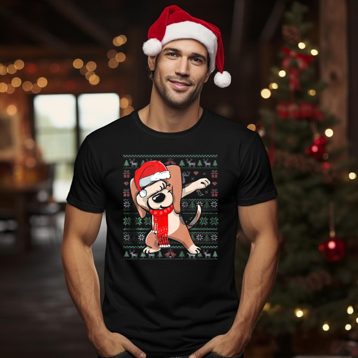 Celebrate the holiday season in style with our Dabbing Beagle Christmas Party Costume Holiday T-Shirt! This fun and festive shirt is perfect for dog lovers and anyone looking to bring some cheer to their casual wear. Whether you’re attending a themed event, a family gathering, or simply enjoying daily activities, this fan-made design embodies the spirit of joy and laughter. Printed in the USA, it features a playful dabbing beagle that is sure to make you the life of the party!