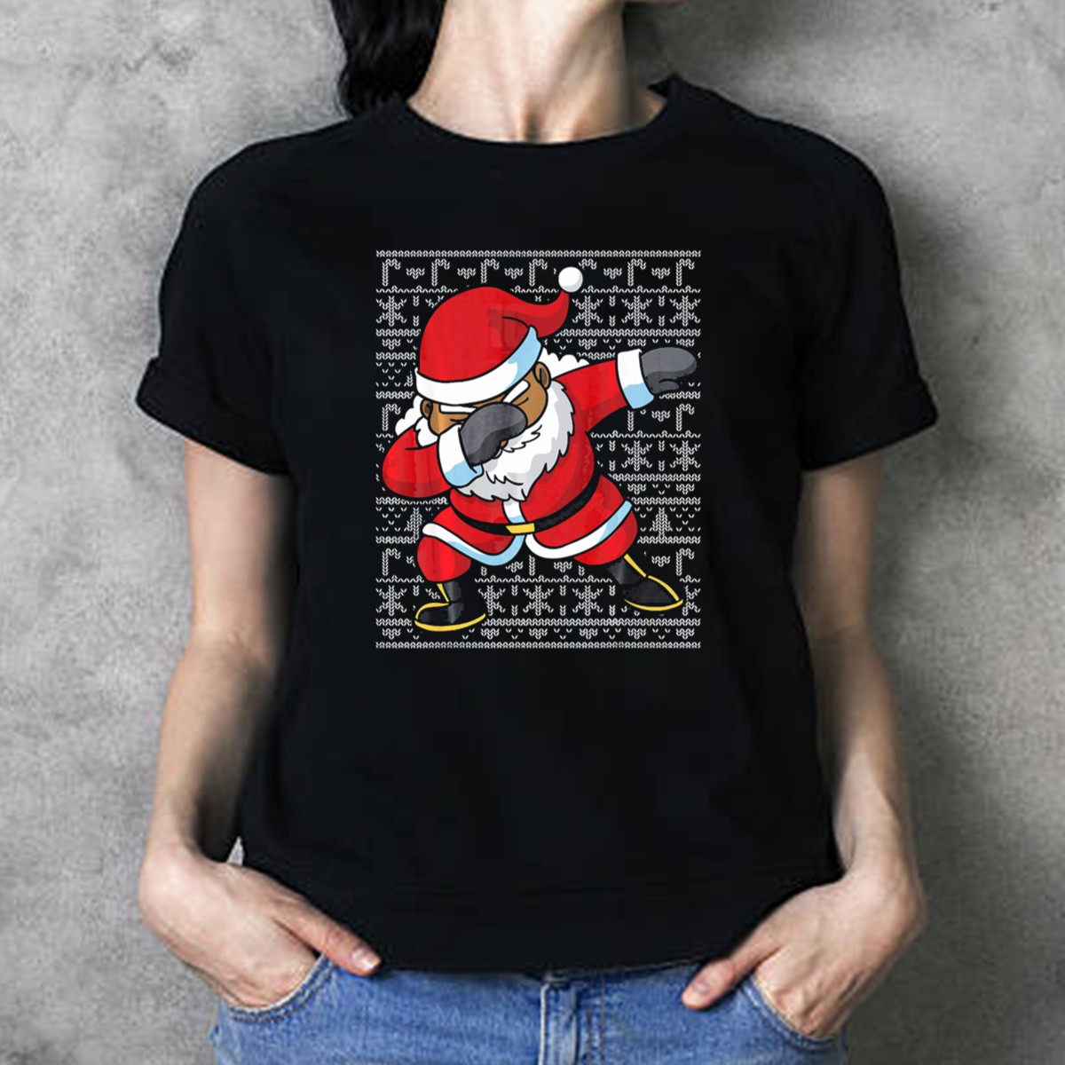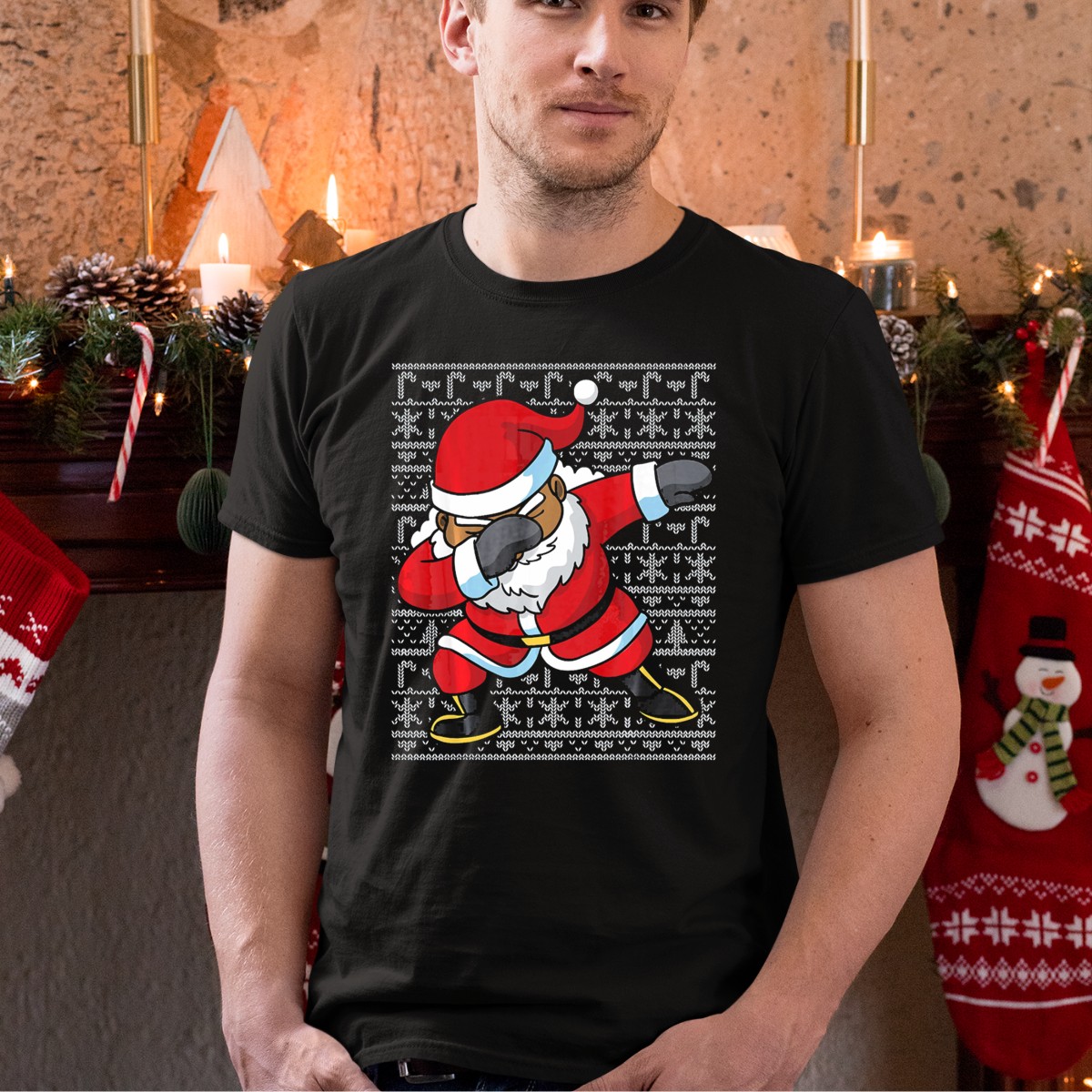Get ready to spread holiday cheer with our Dabbing Black Santa Ugly Christmas T-Shirt! Perfect for festive gatherings, themed events, or simply to showcase your love for unique holiday attire, this fun and playful shirt features a fan-made design that will make you the center of attention. Crafted for comfort and style, it’s an ideal choice for anyone looking to celebrate the season with a touch of personality. Made in the USA, this shirt captures the spirit of Christmas with a modern twist!