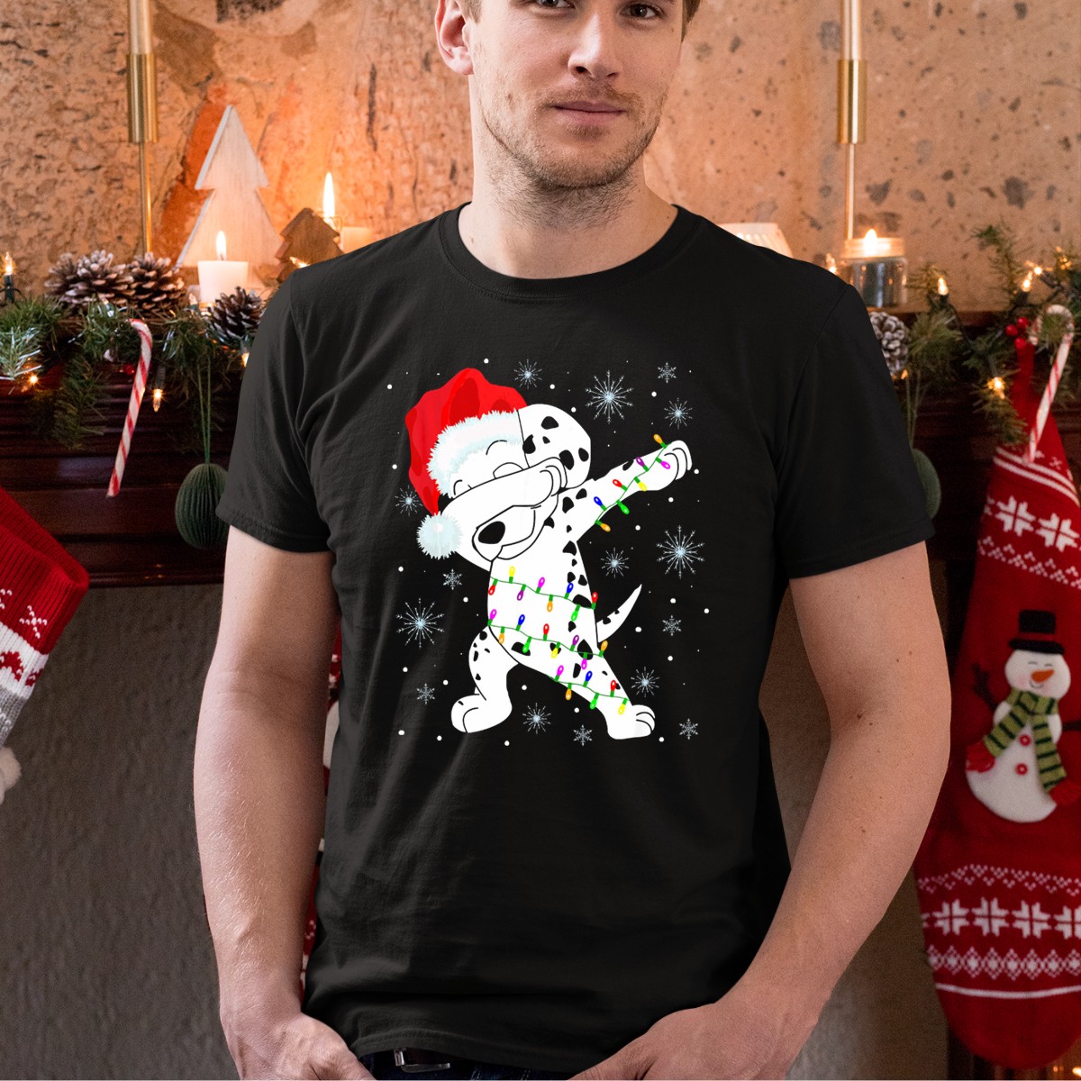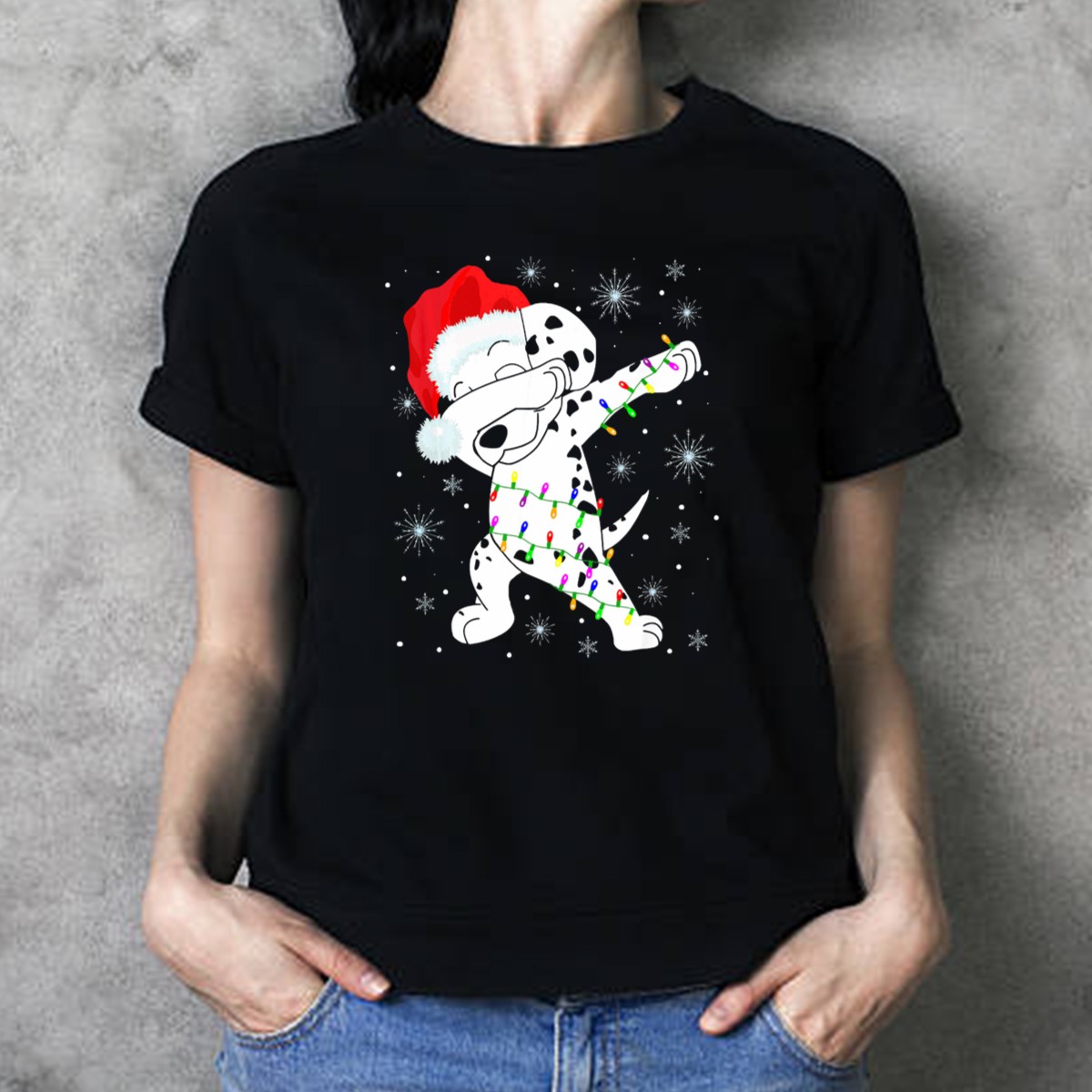 Be the first to review “Dabbing Dalmatian Santa Hat With Christmas Lights And Snowflakes T-Shirt”