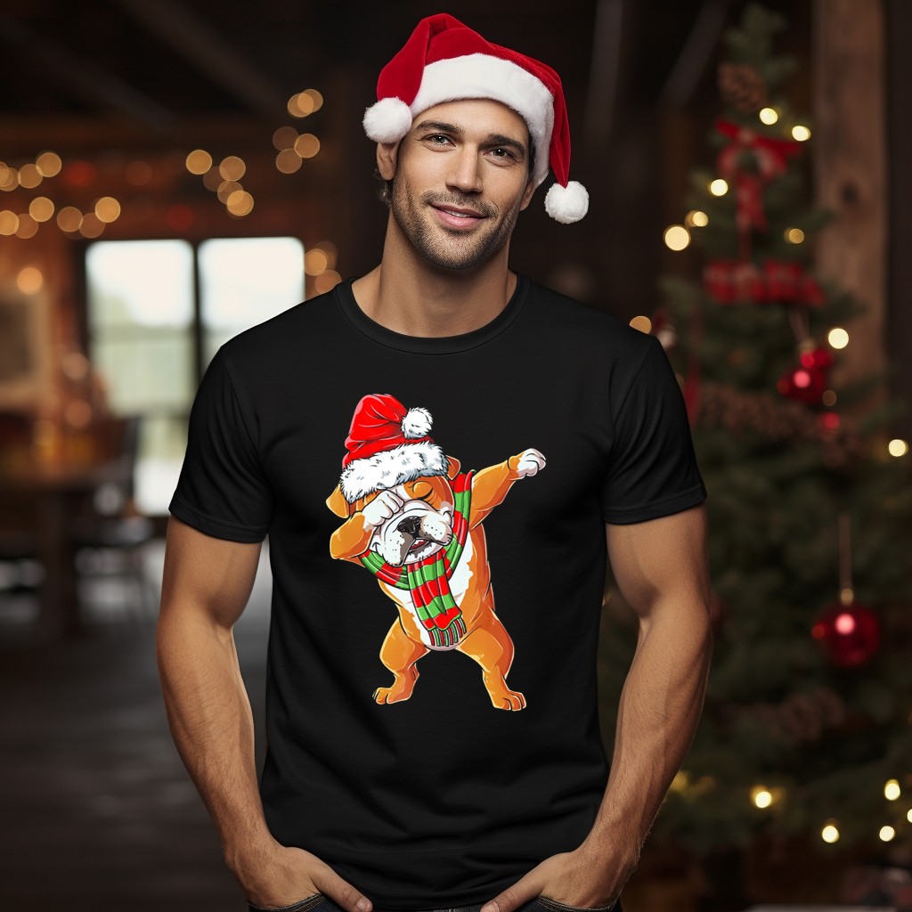 Get into the festive spirit with our Dabbing English Bulldog Santa Claus T-Shirt! Perfect for dog lovers and holiday enthusiasts alike, this fun and playful tee features a cheerful English Bulldog dressed as Santa, complete with a Christmas hat and scarf. Ideal for casual wear, themed events, or just spreading some holiday cheer, this shirt is sure to turn heads and spark smiles wherever you go. Made for comfort and style, it’s a unique addition to your holiday wardrobe!