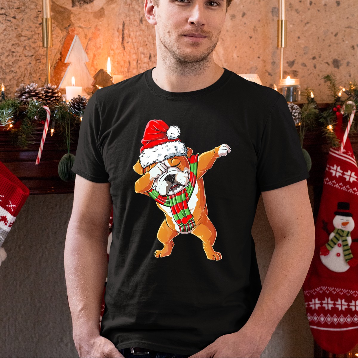 Be the first to review “Dabbing English Bulldog Santa Claus With Christmas Hat And Scarf T-Shirt”