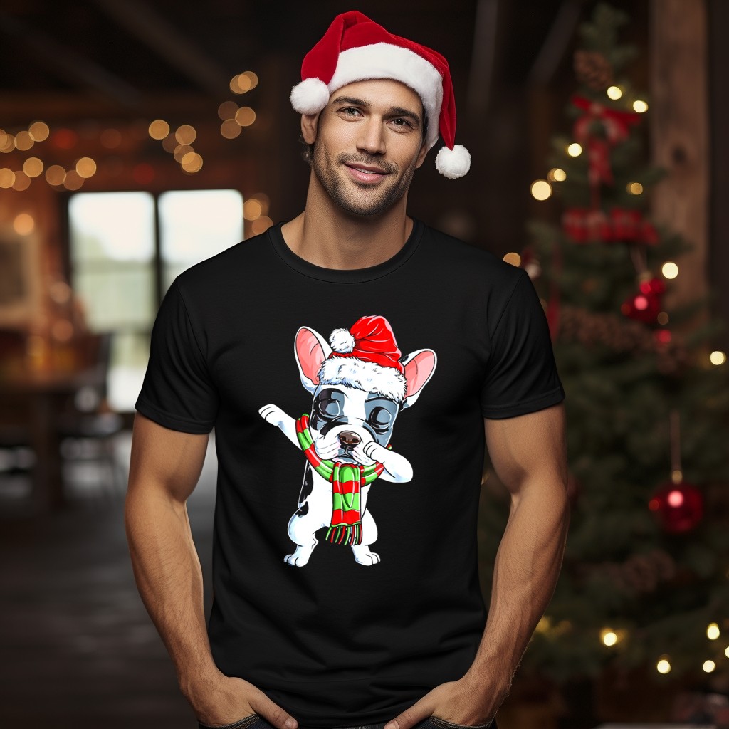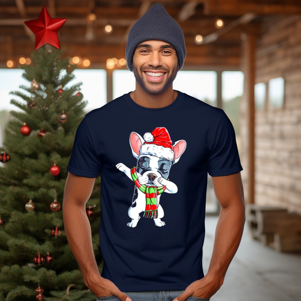 Celebrate the festive season in style with our Dabbing French Bulldog Santa Christmas Scarf T-Shirt! This playful and unique design is perfect for dog lovers and anyone looking to spread holiday cheer. Ideal for casual wear, themed events, or just a fun day out, this shirt combines comfort with a touch of holiday spirit, making it a must-have addition to your wardrobe. Plus, it’s fan-made and printed right here in the USA!