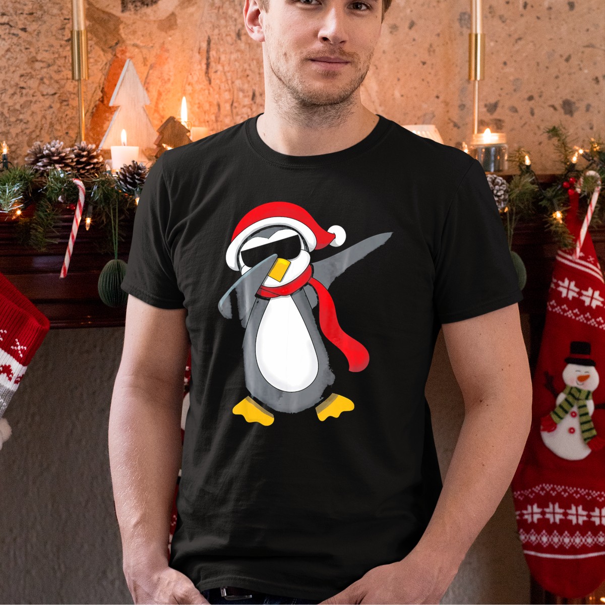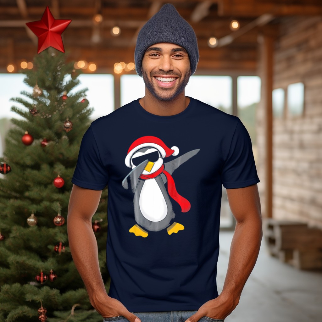 Get ready to spread some holiday cheer with our Dabbing Penguin Christmas Mornin T-Shirt! This delightful fan-made design features an adorable penguin sporting a Santa hat and scarf, perfect for anyone who loves to celebrate the festive season in style. Whether you’re attending a casual holiday gathering, themed events, or just enjoying daily wear, this shirt is sure to bring smiles and laughter wherever you go. Printed in the USA, it’s a unique addition to your wardrobe!