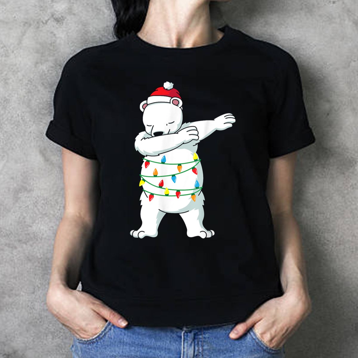 Dabbing Polar Bear With Christmas Lights And Santa Hat T Shirt