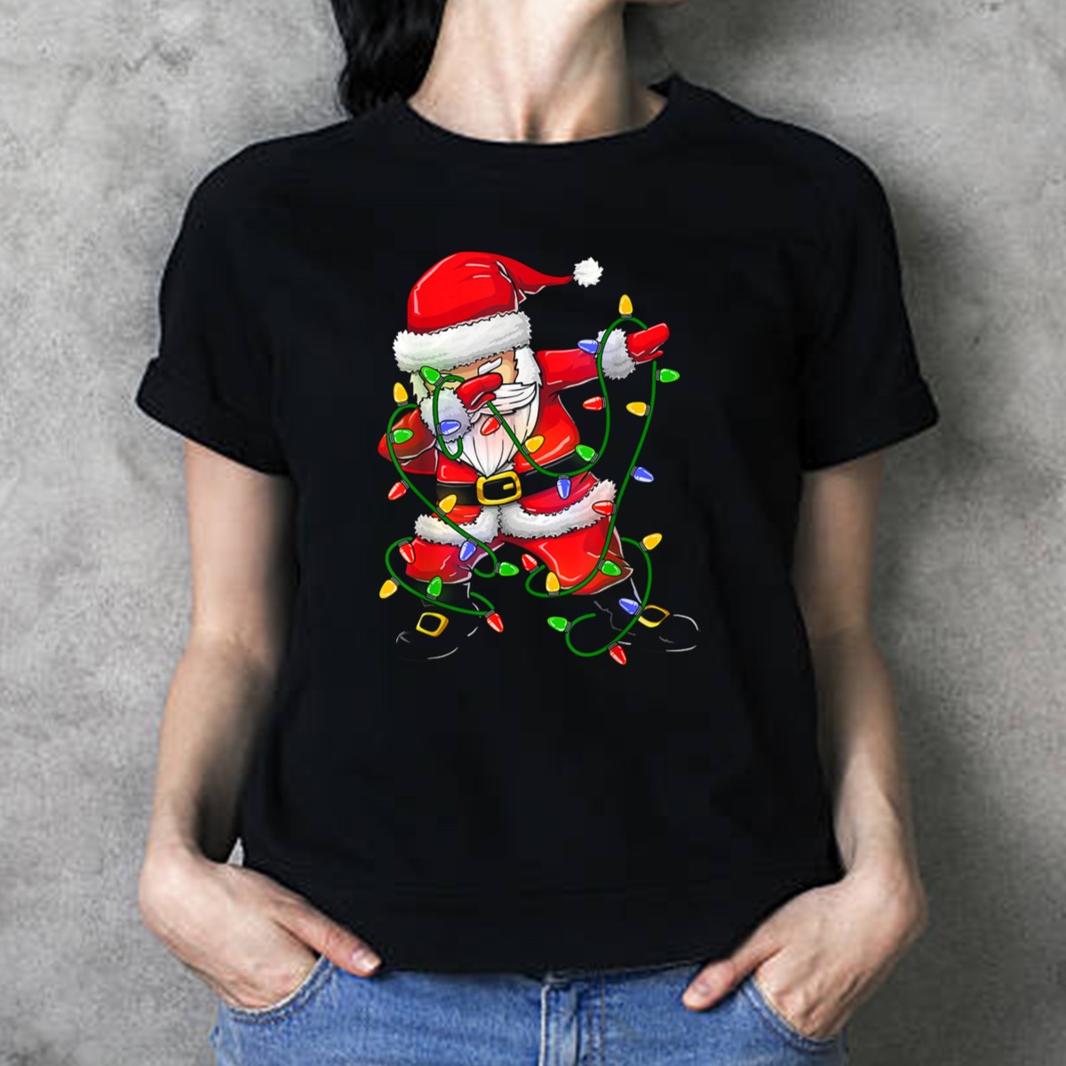 Get into the holiday spirit with our Dabbing Santa Girls Christmas Tree Lights T-Shirt! Perfect for anyone looking to add a fun twist to their festive wardrobe, this shirt features a playful design that celebrates the joy of the season. Whether you’re attending a themed event, enjoying a casual day with friends, or simply spreading cheer, this fan-made graphic tee is sure to make you stand out. Printed in the USA, it combines comfort and style for all your Christmas festivities.