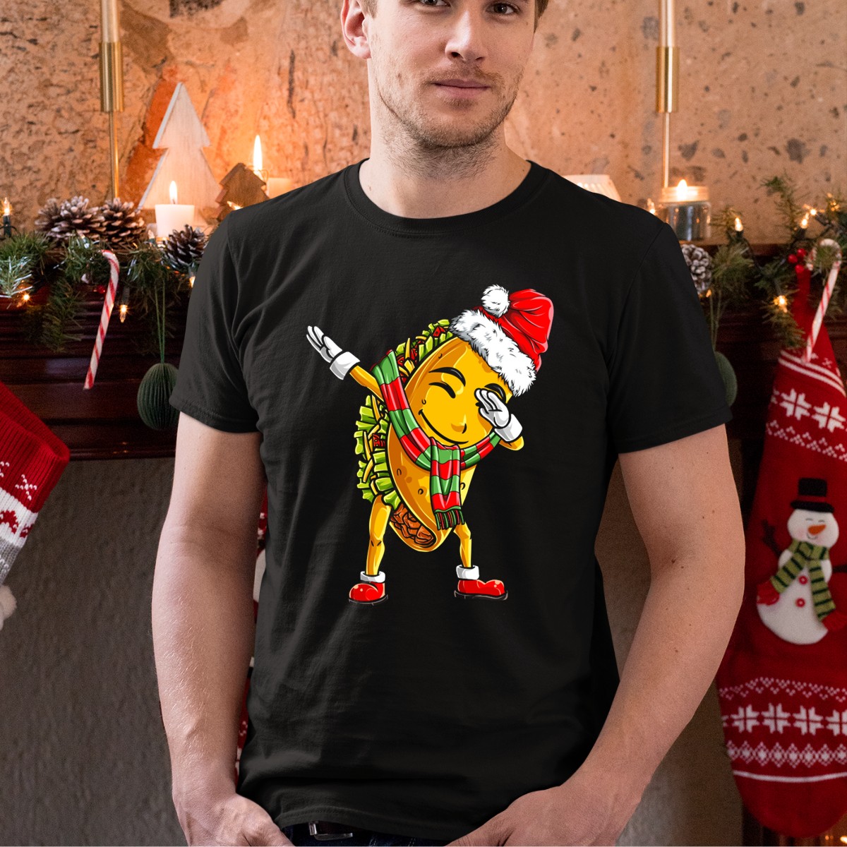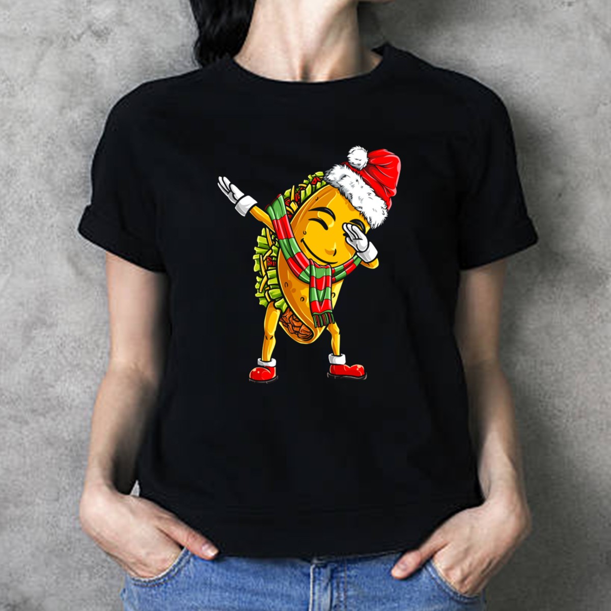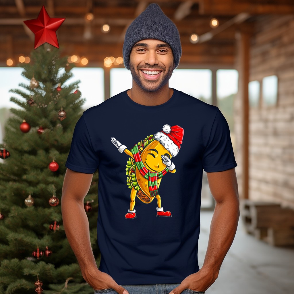Get into the festive spirit with our Dabbing Santa Taco T-Shirt! Perfect for taco lovers and Christmas enthusiasts alike, this fun and unique design showcases a cheerful Santa rocking a taco, complete with a festive hat and scarf. Ideal for casual wear, themed events, or just spreading holiday cheer during the season, this shirt is sure to turn heads and spark conversations wherever you go.