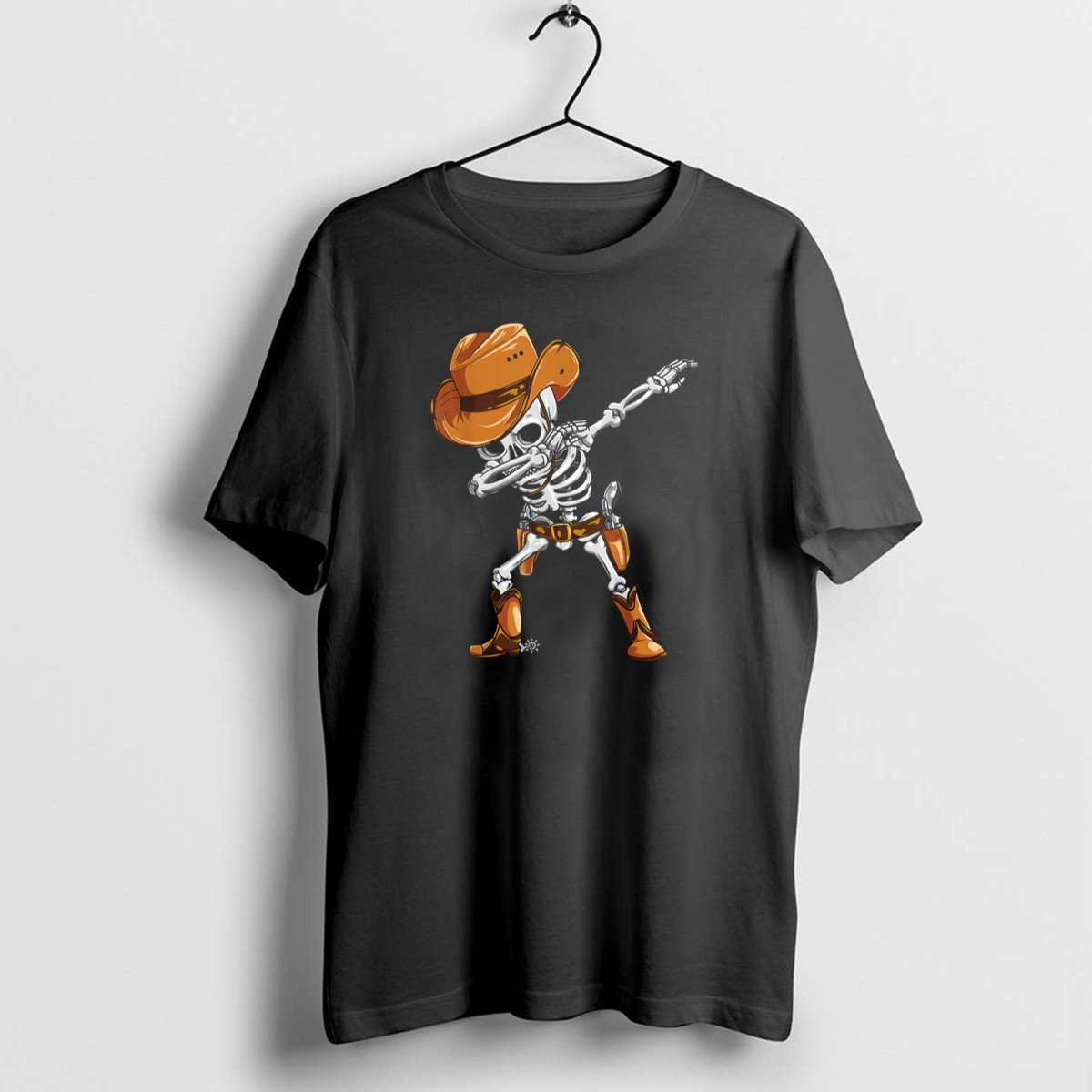 Get ready for a spooktacular Halloween with our Dabbing Skeleton Cowboy T-Shirt! Perfect for kids who love to celebrate the season in style, this fun and playful design combines the classic cowboy look with a dabbing skeleton twist. Ideal for themed events, trick-or-treating, or just casual wear, this shirt is sure to be a hit among young ghouls and goblins. Plus, it’s fan-made and proudly printed in the USA, making it a unique addition to any Halloween wardrobe!