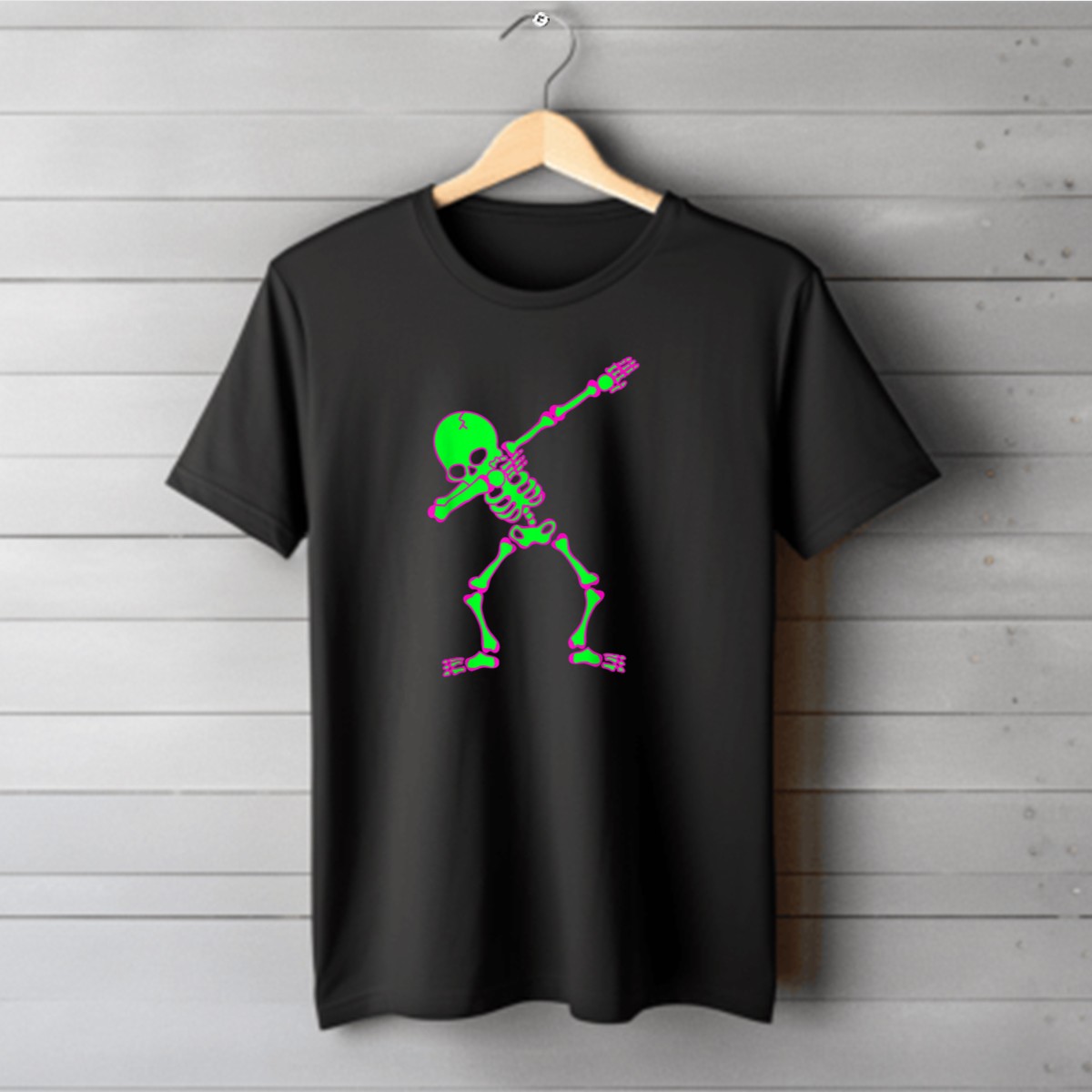 Get ready to dance this Halloween with our Dabbing Skeleton Kids Bones T-Shirt! Perfect for little ones who love to celebrate in style, this fun and vibrant shirt features a playful neon green and pink design that brings a spooky twist to their wardrobe. Ideal for casual outings, themed events, or just everyday wear, this fan-made shirt is printed right here in the USA, making it a unique addition to your child’s Halloween festivities.