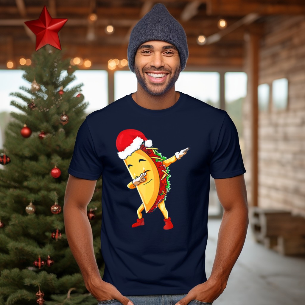 Get ready to spice up your holiday celebrations with our Dabbing Taco Santa Christmas Pajama Holiday Dance T-Shirt! Perfect for festive gatherings, themed events, or just lounging at home, this shirt is designed for those who love to bring a fun twist to traditional holiday attire. With its playful fan-made design printed in the USA, this tee is a unique addition to your seasonal wardrobe that will surely turn heads and spread joy!