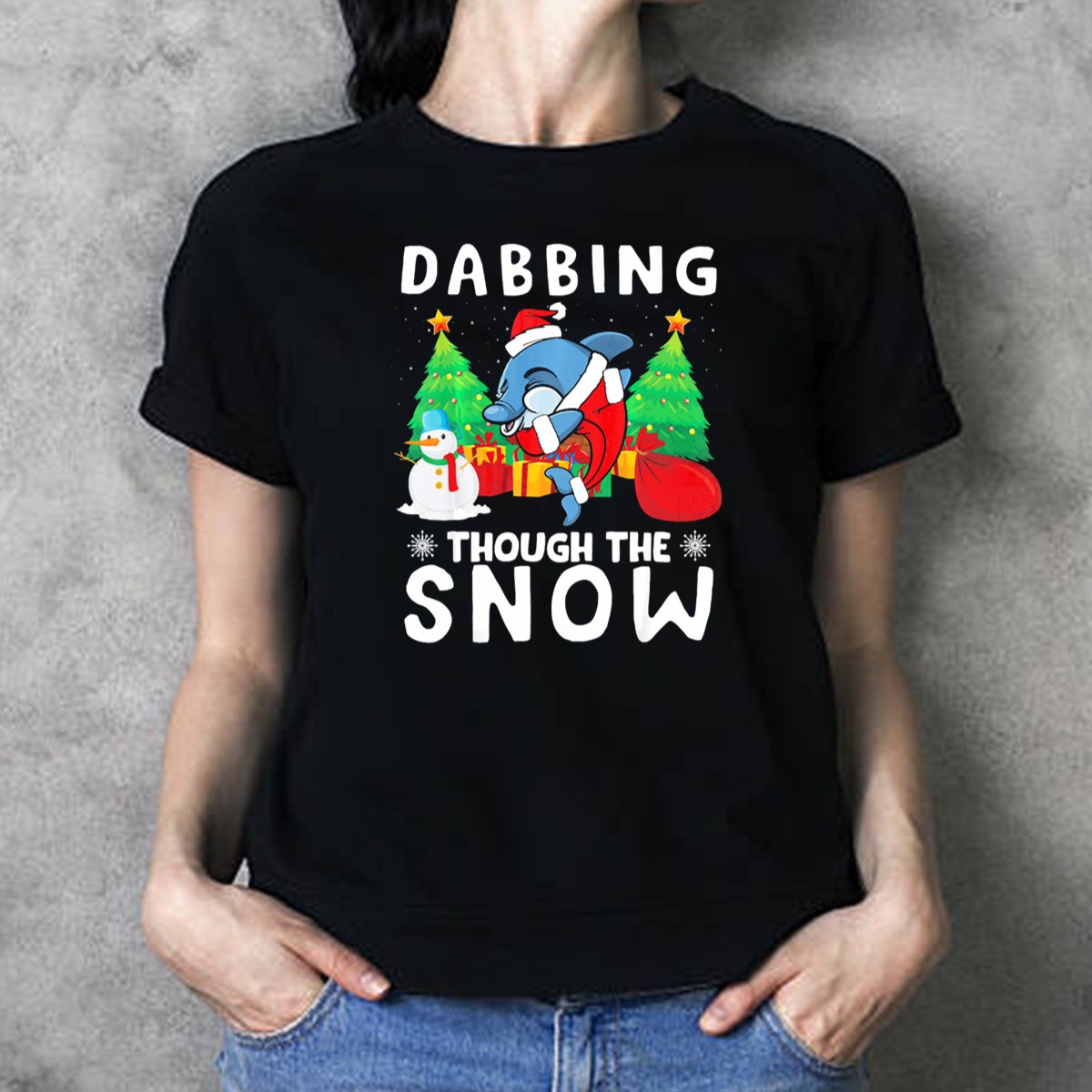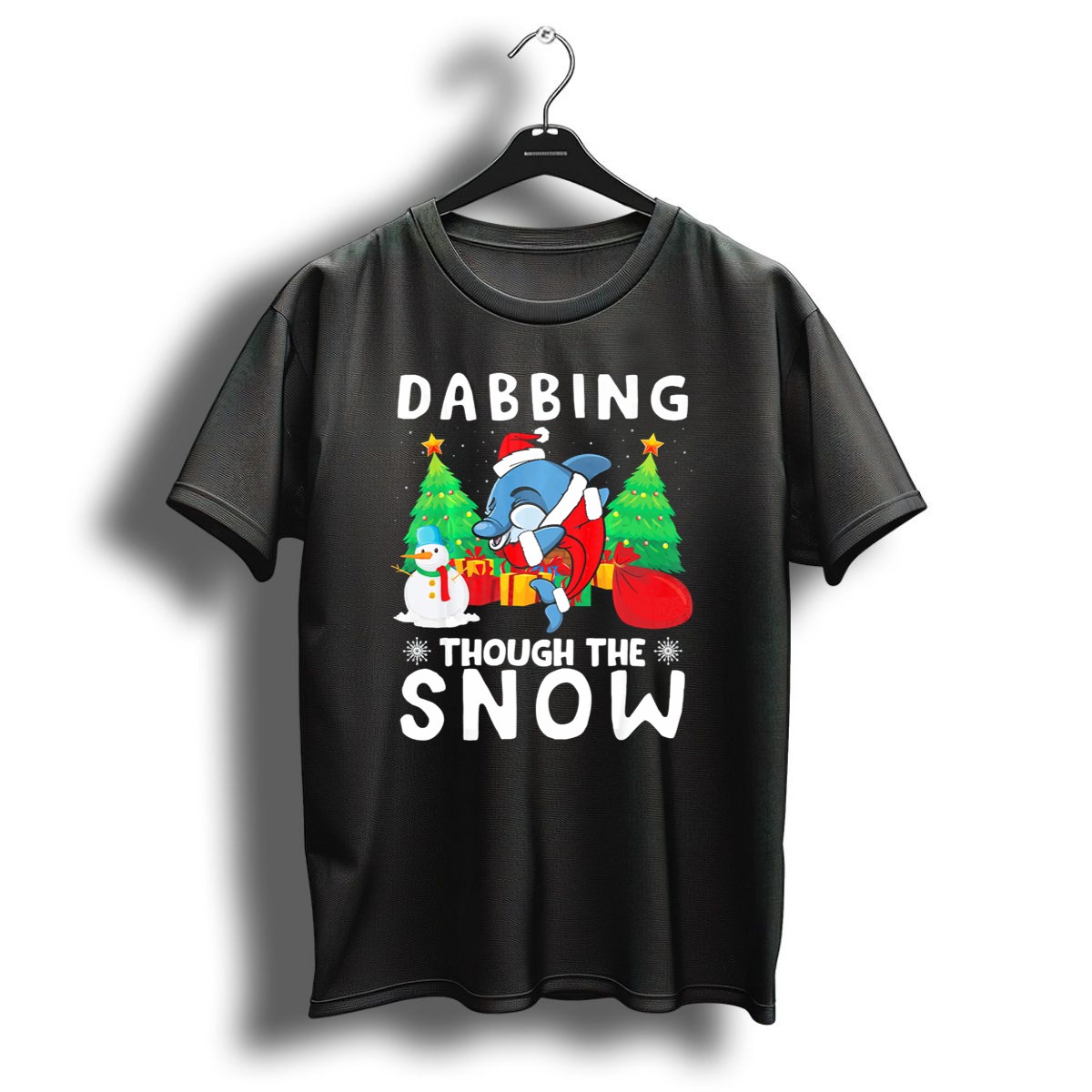 Celebrate the holiday season with our Dabbing Through The Snow T-Shirt, featuring a playful design that combines festive cheer with a touch of fun! Perfect for dolphin lovers and those who embrace the joy of Christmas, this shirt is ideal for casual wear, themed events, or simply spreading holiday spirit. Made in the USA, this fan-made design is sure to turn heads and bring smiles wherever you go.