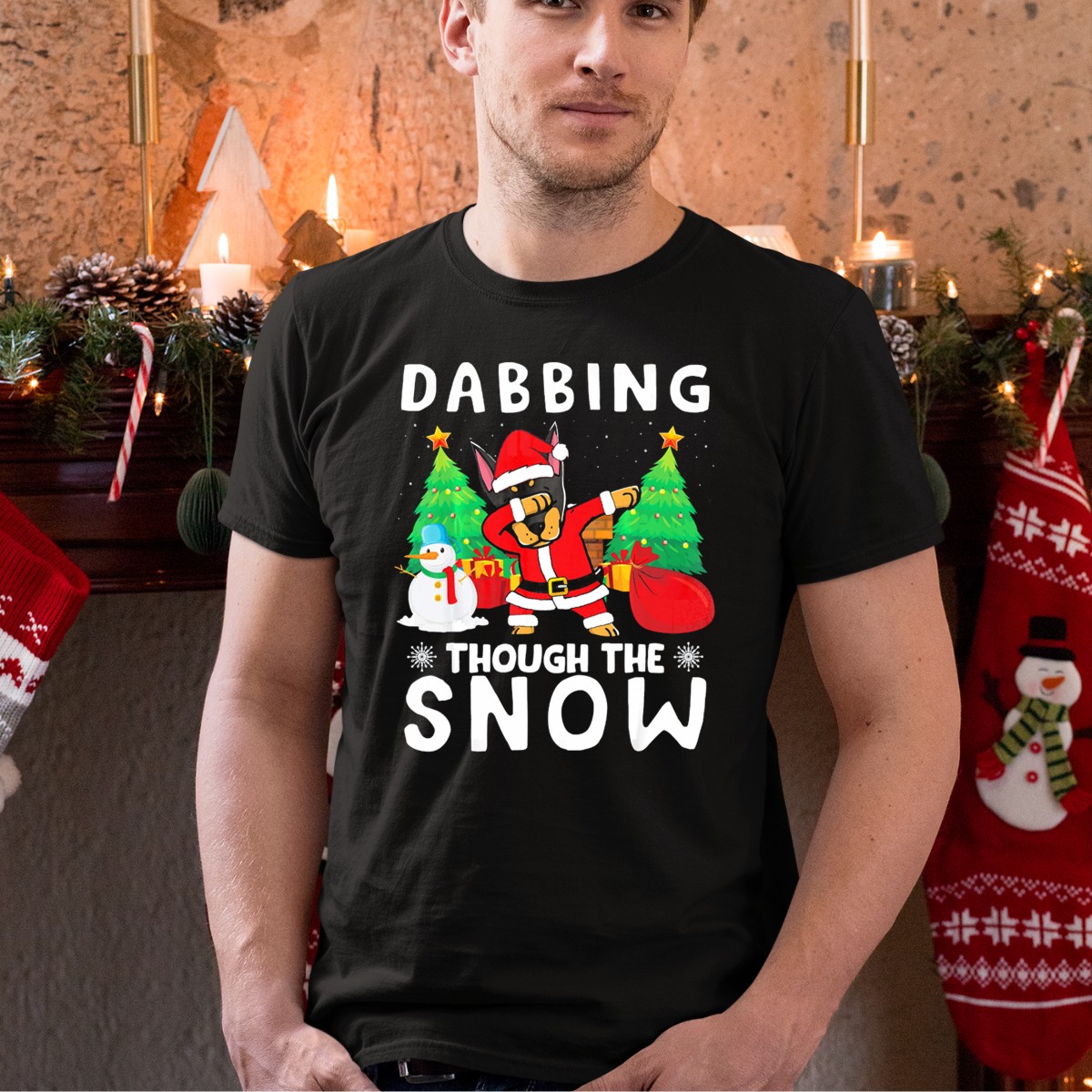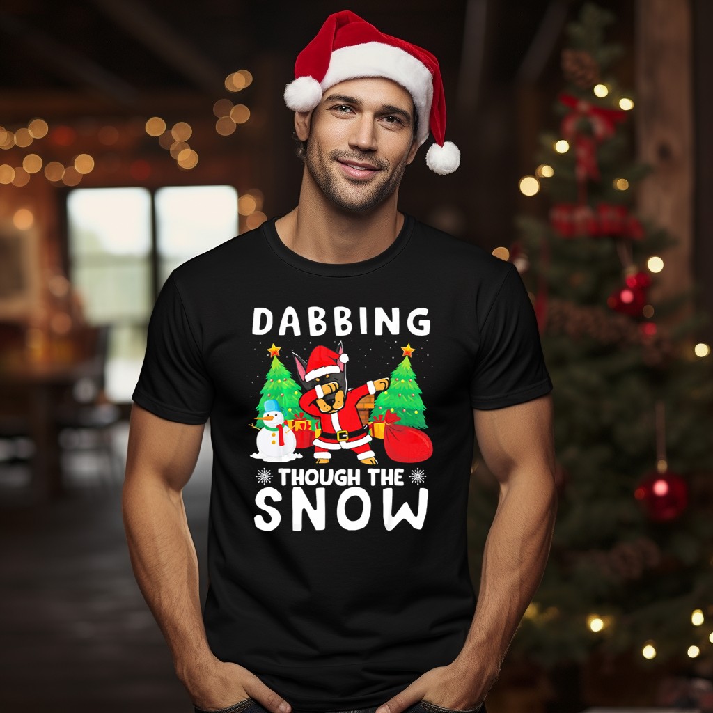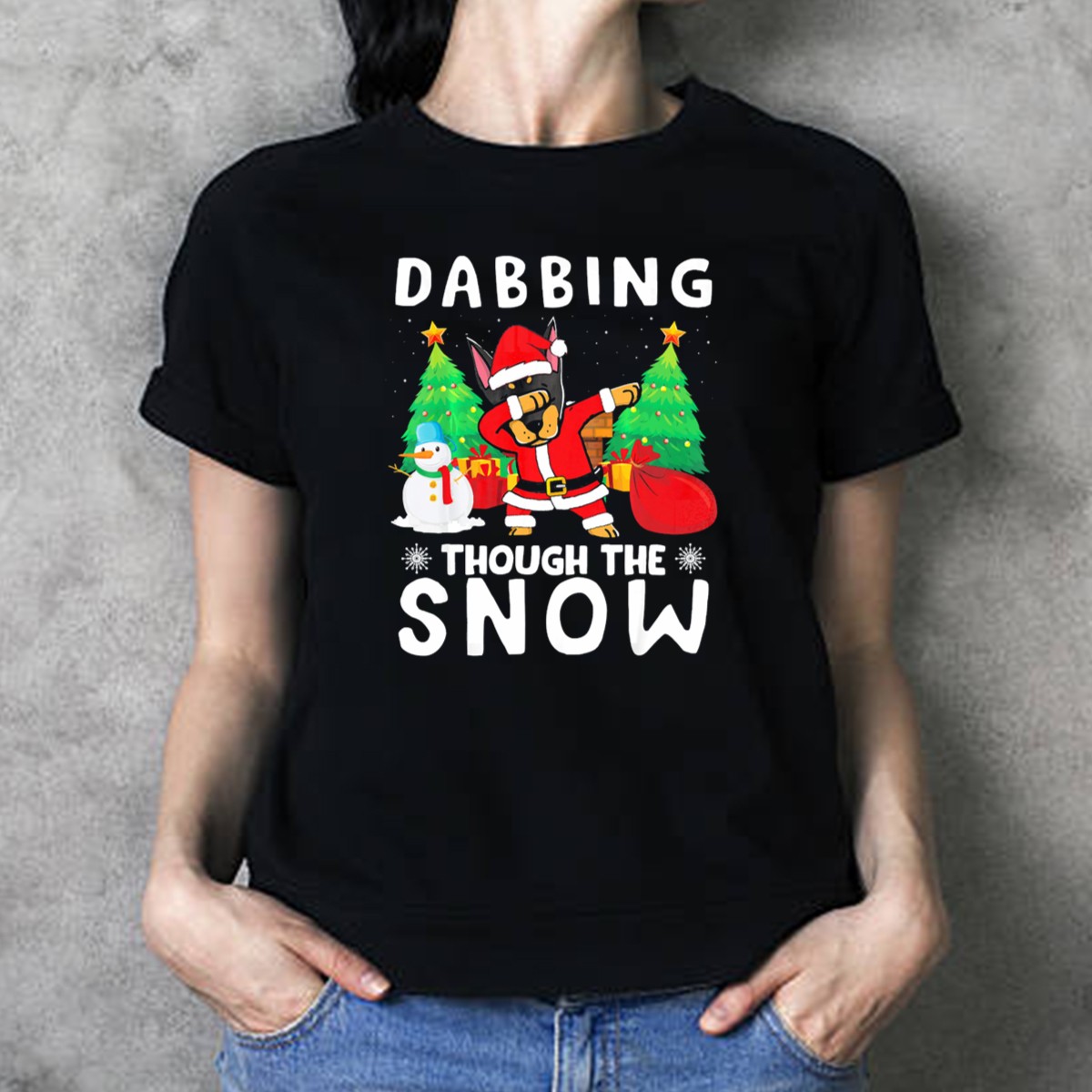 Be the first to review “Dabbing Through The Snow Doberman Santa Christmas Scene T-Shirt”