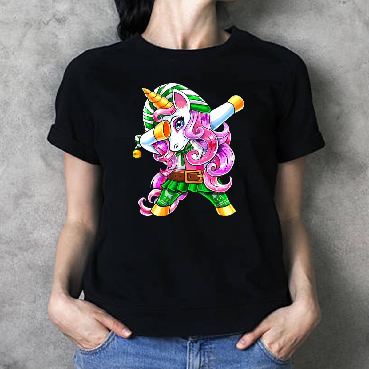 Unleash the holiday spirit with our Dabbing Unicorn Christmas Elf Costume T-Shirt, perfect for unicorn lovers and festive fun! This whimsical tee features a playful design that combines the magic of unicorns with the charm of Christmas elves, making it an ideal choice for themed events, casual outings, or daily wear. Crafted for comfort and style, this shirt is not just a statement piece; it’s a celebration of creativity and joy, printed right here in the USA!