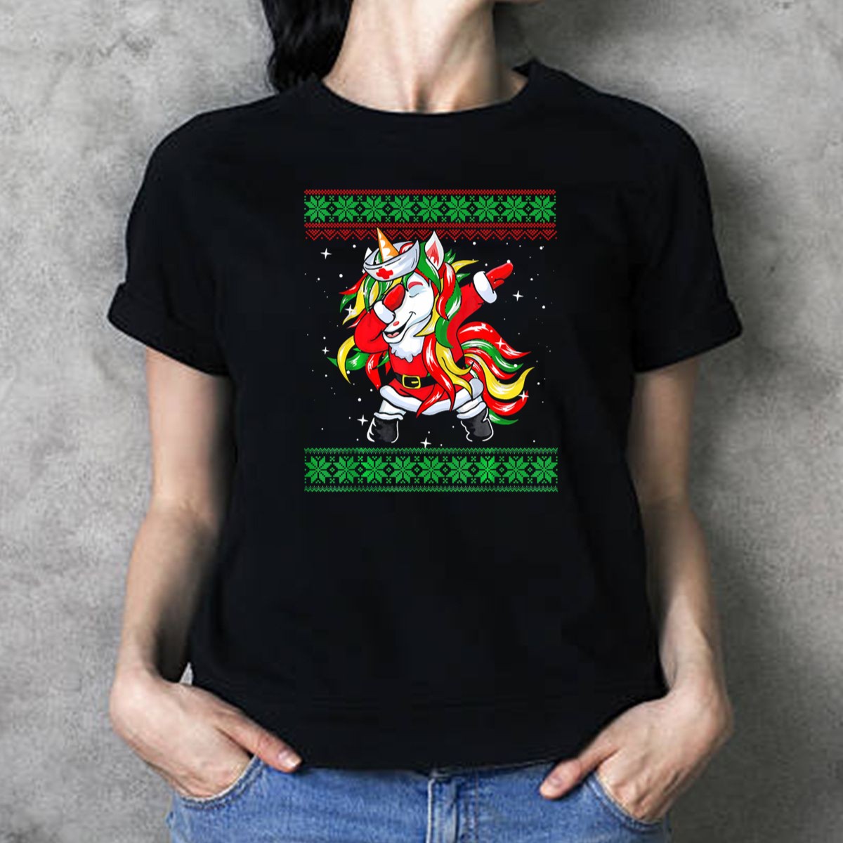 Celebrate the holiday season with our Dabbing Unicorn Nurse Mrs. Claus Ugly Christmas T-Shirt! This whimsical design is perfect for nurses, unicorn lovers, and anyone looking to add a touch of fun to their festive wardrobe. Ideal for casual wear, themed events, or daily outings, this shirt brings a unique blend of cheer and charm that will make you the center of attention at any gathering. Plus, it’s fan-made and proudly printed in the USA, ensuring quality and creativity in every stitch!