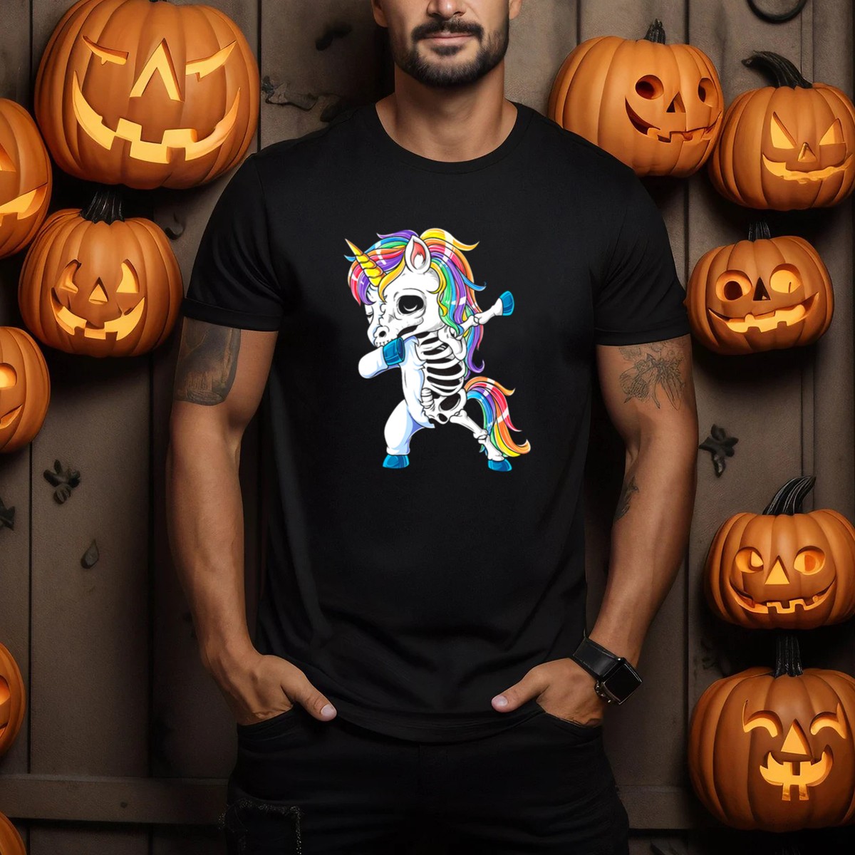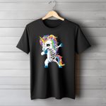 Get ready to bring some magic to your Halloween festivities with our Dabbing Unicorn Skeleton T-Shirt! Perfect for girls who love to stand out, this fun and quirky shirt combines a playful skeleton design with a vibrant rainbow twist. Whether you’re heading to a themed party, trick-or-treating, or just looking to add some whimsy to your daily wear, this shirt is sure to turn heads and spread smiles. Made in the USA, it’s a unique fan-made design that embodies the spirit of fun and creativity!