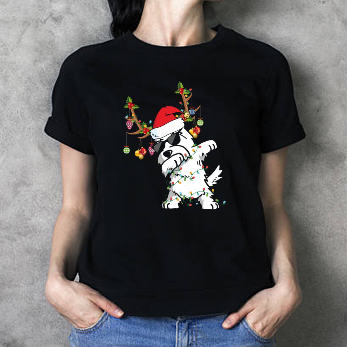 Celebrate the holiday season in style with our Dabbing Westie Dog Christmas Lights T-Shirt! Perfect for dog lovers and festive spirits alike, this fun and playful design features an adorable Westie rocking a Santa hat and reindeer antlers, making it an ideal choice for casual wear, themed events, or daily festivities. Crafted for comfort and durability, this shirt is a must-have for anyone looking to spread holiday cheer.
