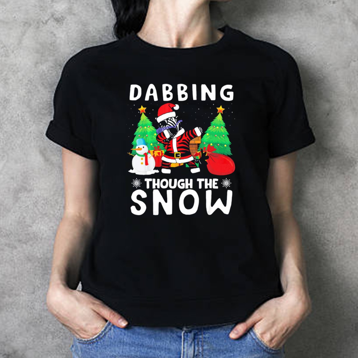 Get ready to spread holiday cheer with our Dabbing Zebra Santa T-Shirt! Perfect for festive gatherings, themed events, or simply adding a fun twist to your daily wear, this shirt features a playful design that brings together a dabbing zebra Santa, a cheerful snowman, and charming Christmas trees. Made for those who love to celebrate the season with style, this fan-made design is printed in the USA, ensuring quality and uniqueness in every wear.